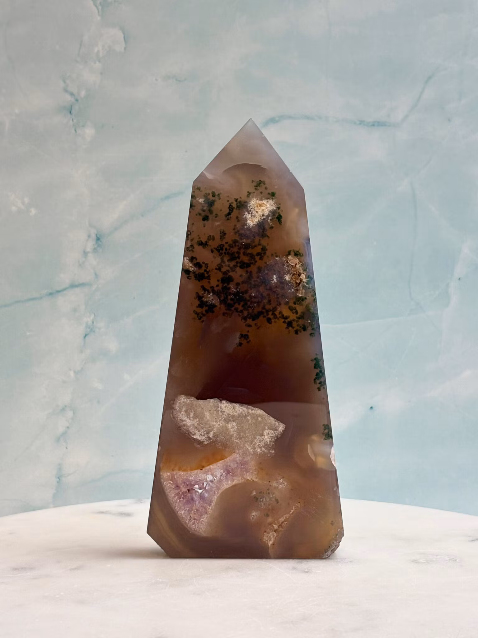 Om Agat: Agat är känd som en jordande sten som hjälper dig att finna lugn i en hektisk värld. Dess milda men kraftfulla energi verkar långsamt och stabiliserar känslor, vilket gör den perfekt för dig som söker inre frid och mental klarhet. Bär den som en kraftkälla. Placera den i ditt hem. Låt agat guida dig till ett liv i harmoni.