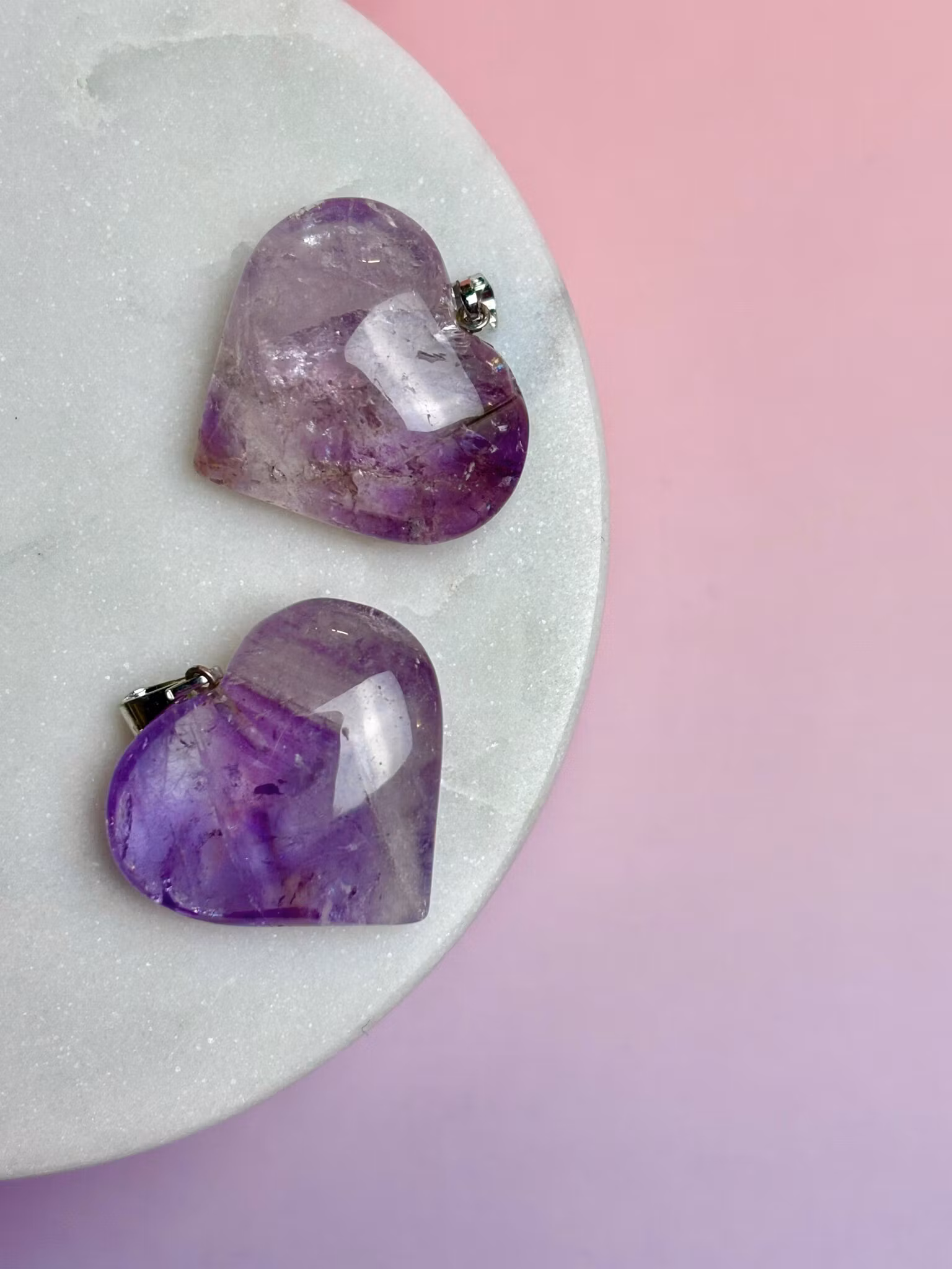Vackert hänge i ametist i hjärtform.