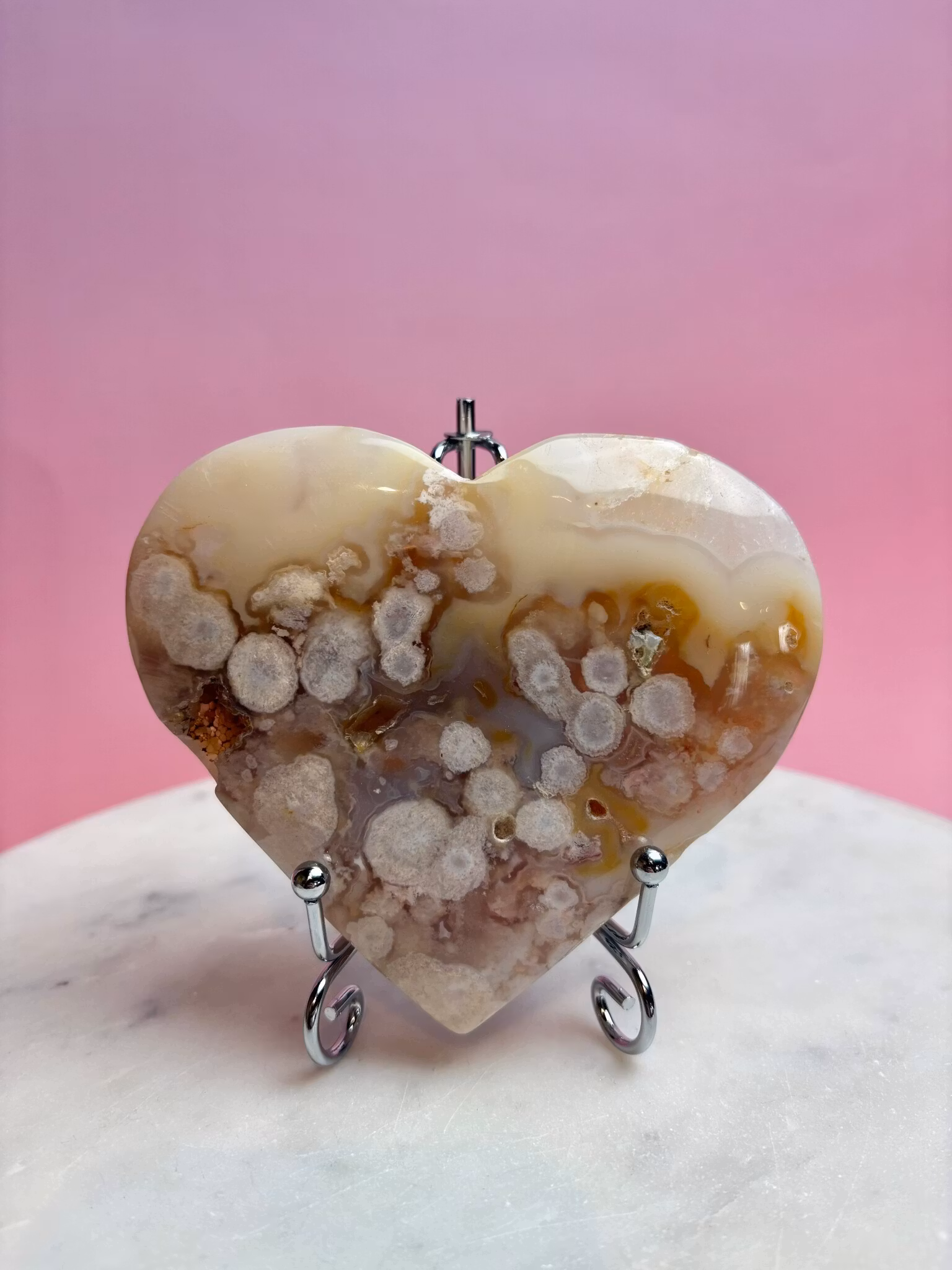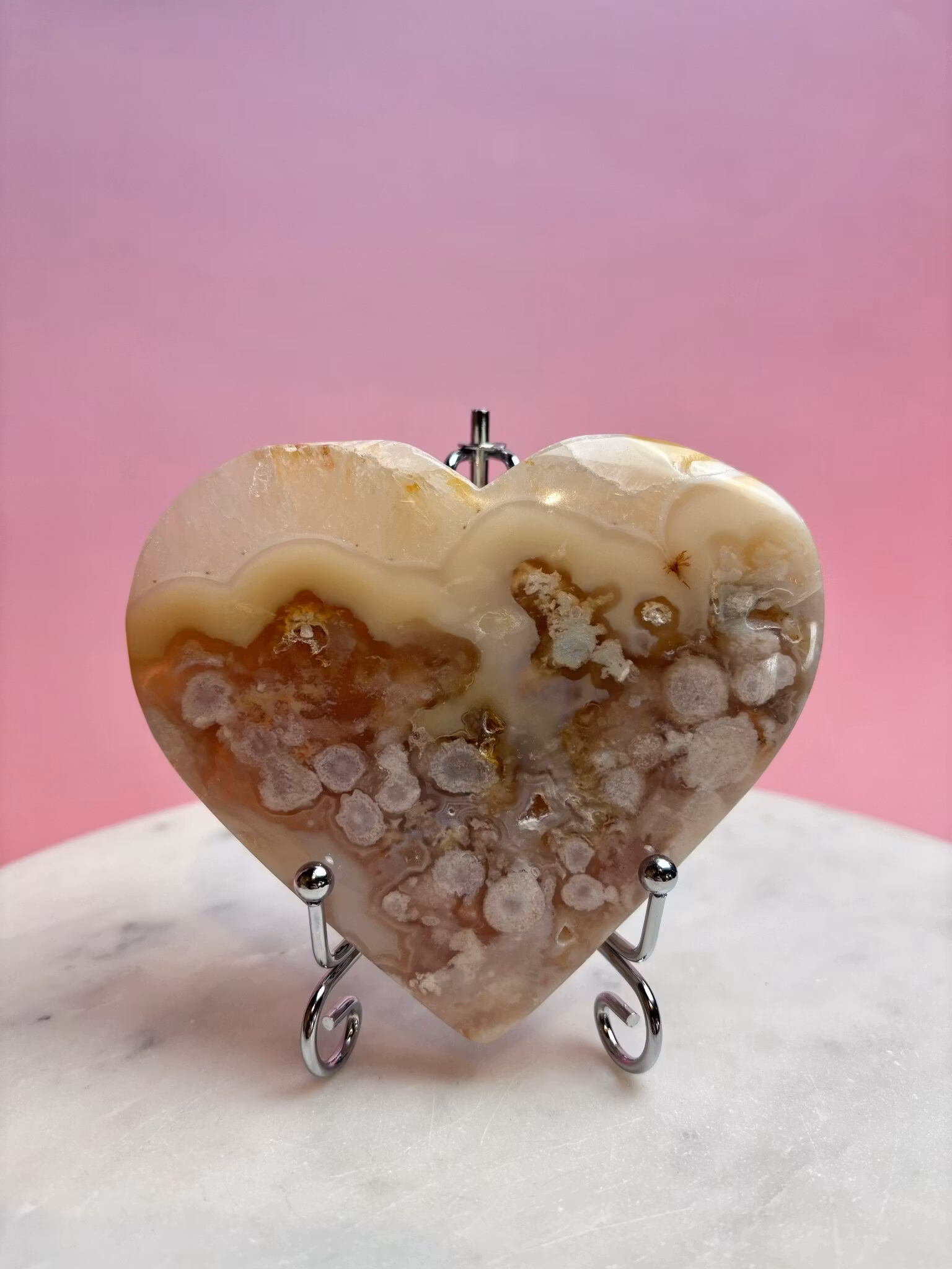 Blomsteragat bär på en mjuk och feminin energi som är fylld av glädje och harmoni. Den påminner oss om att livet är en resa av ständig tillväxt och att vi har kraften och är kapabla till att blomstra och nå vår fulla potential. Med sin upplyftande energi stärker kristallen vår vilja att följa våra drömmar och ger oss modet att ta oss an nya projekt eller kapitel i livet. Kristallen står därför även för nystart och hjälper oss att känna tillit till att allt ordnar sig, även under förändringens tid.
