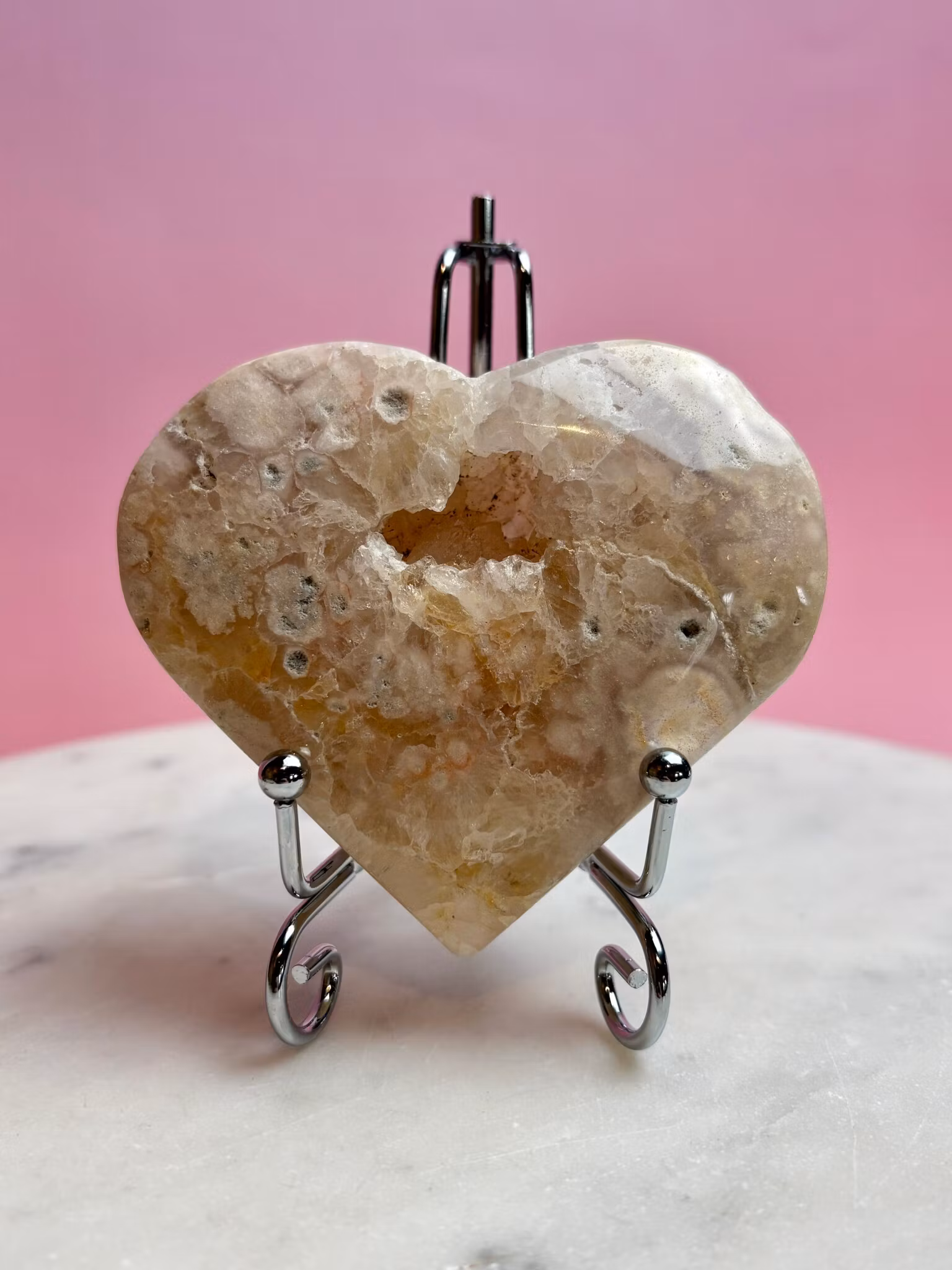 Blomsteragat bär på en mjuk och feminin energi som är fylld av glädje och harmoni. Den påminner oss om att livet är en resa av ständig tillväxt och att vi har kraften och är kapabla till att blomstra och nå vår fulla potential. Med sin upplyftande energi stärker kristallen vår vilja att följa våra drömmar och ger oss modet att ta oss an nya projekt eller kapitel i livet. Kristallen står därför även för nystart och hjälper oss att känna tillit till att allt ordnar sig, även under förändringens tid.