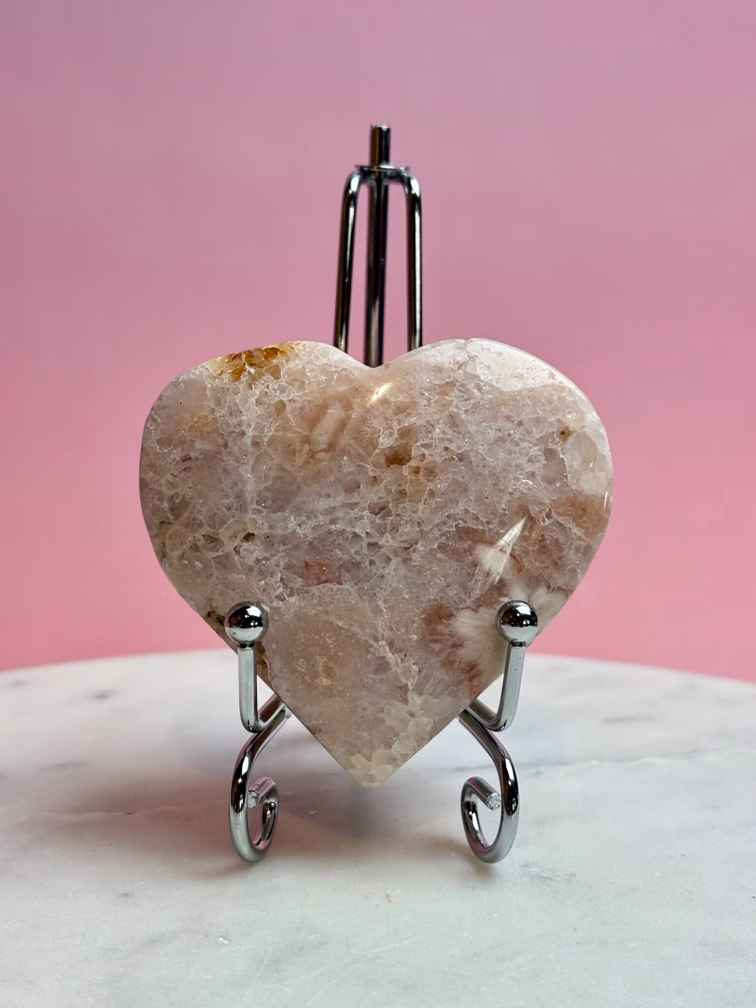 Blomsteragat bär på en mjuk och feminin energi som är fylld av glädje och harmoni. Den påminner oss om att livet är en resa av ständig tillväxt och att vi har kraften och är kapabla till att blomstra och nå vår fulla potential. Med sin upplyftande energi stärker kristallen vår vilja att följa våra drömmar och ger oss modet att ta oss an nya projekt eller kapitel i livet. Kristallen står därför även för nystart och hjälper oss att känna tillit till att allt ordnar sig, även under förändringens tid.