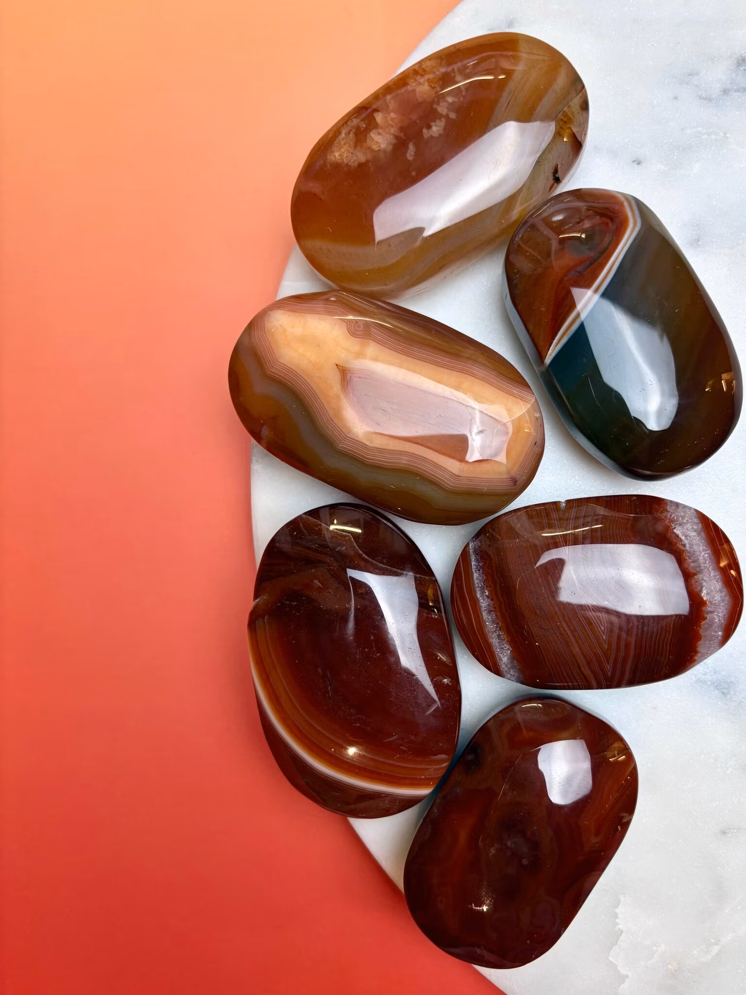 Karneolen är en kristall som tillhör kvartsfamiljen, känd kristall för sina röd-orange nyanser som utstrålar värme och energi. Karneolen är en kraftfull kristall som anses vara en riktig energigivare - fylld med passion, kreativitet och motivation. Karneolen sägs ha en unik förmåga att stimulera din inre kraft och öka din mentala energi, vilket gör att den kan fungera som en energiboost för både kropp och sinne.