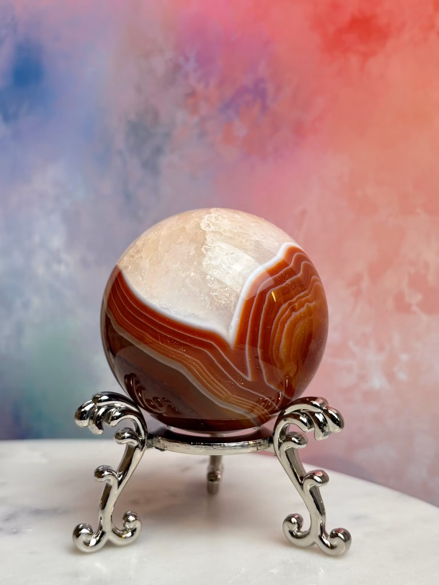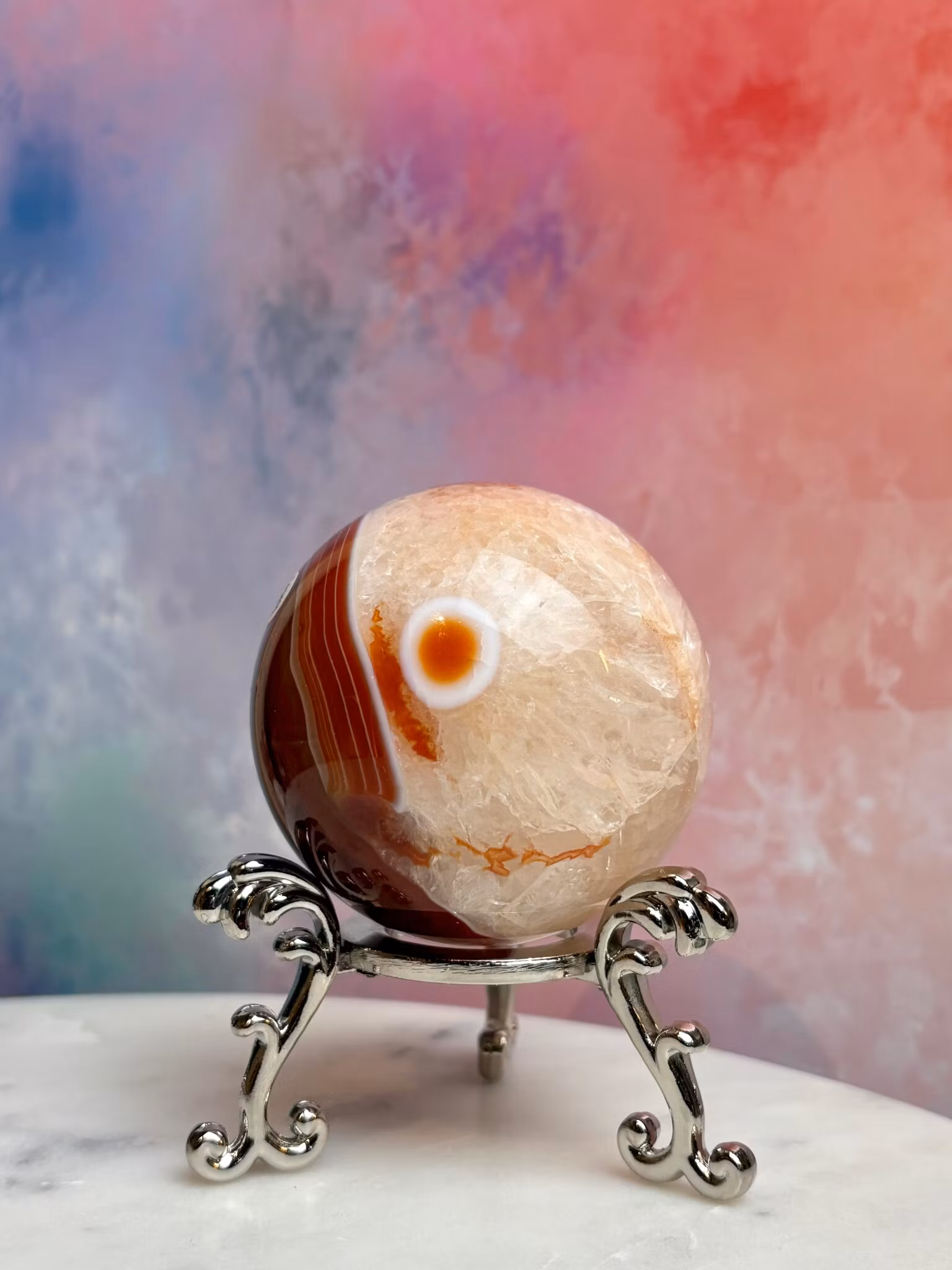 Karneolen är en kraftfull kristall som anses vara en riktig energigivare - fylld med passion, kreativitet och motivation. Karneolen sägs ha en unik förmåga att stimulera din inre kraft och öka din mentala energi, vilket gör att den kan fungera som en energiboost för både kropp och sinne. Den sägs hjälpa till att jaga bort rädslor och blockeringar och öppnar dörrar till nya möjligheter, fyllda med inspiration, lust och kärlek. Denna sten skapar en känsla av mod, och får dig att agera på dina drömmar och passioner.