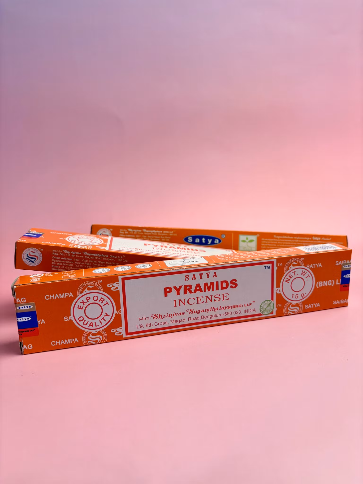 Om Pyramids: Satya Pyramids-rökelsen har en unik och djup arom med en balanserad blandning av träiga, kryddiga och blommiga toner. Den förmedlar en känsla av mystik och andlig upplysning, perfekt för meditation, reflektion och energibalansering. Dess varma och harmoniska doft skapar en fridfull atmosfär som hjälper till att höja medvetandet och främja inre klarhet.