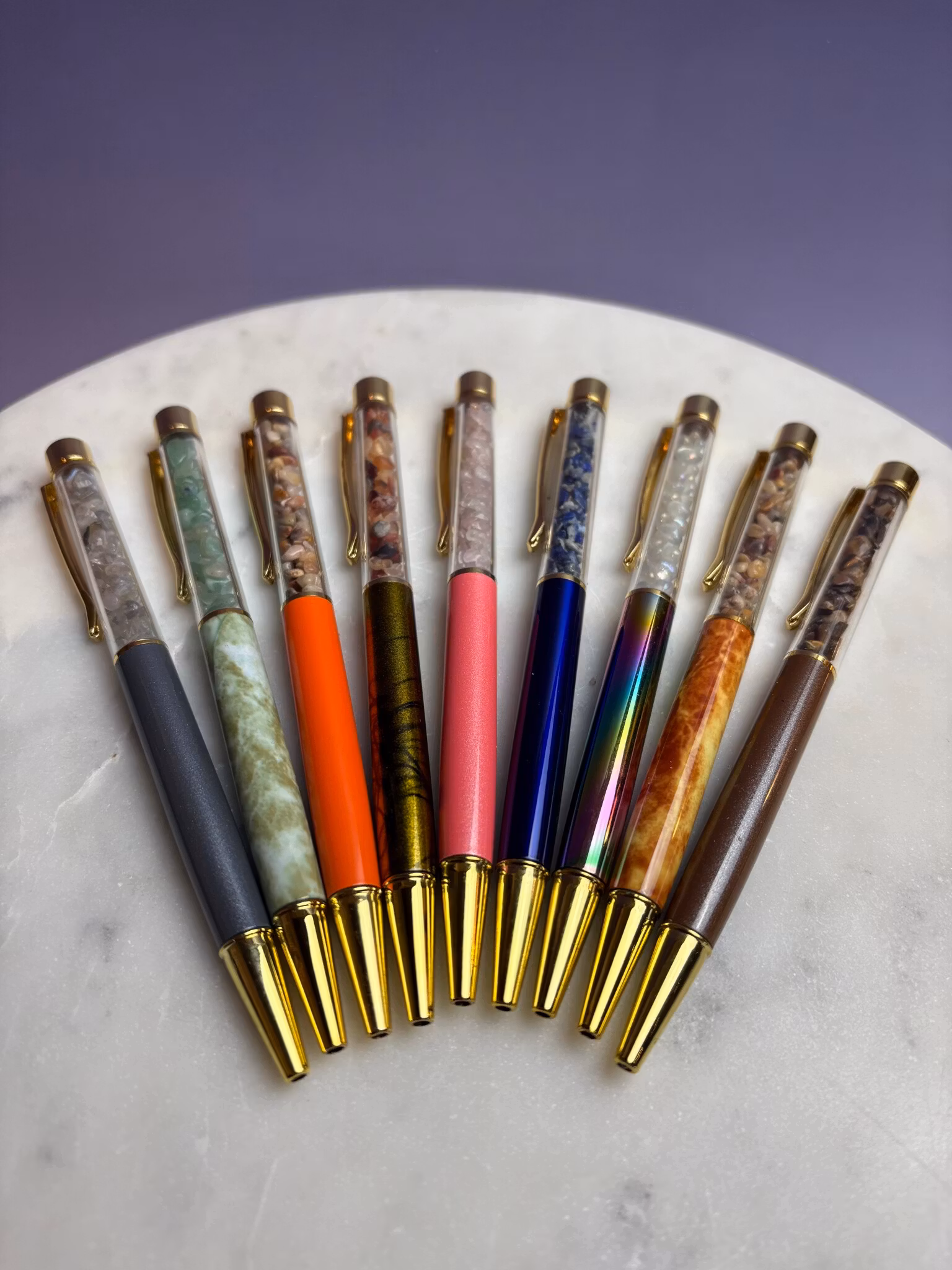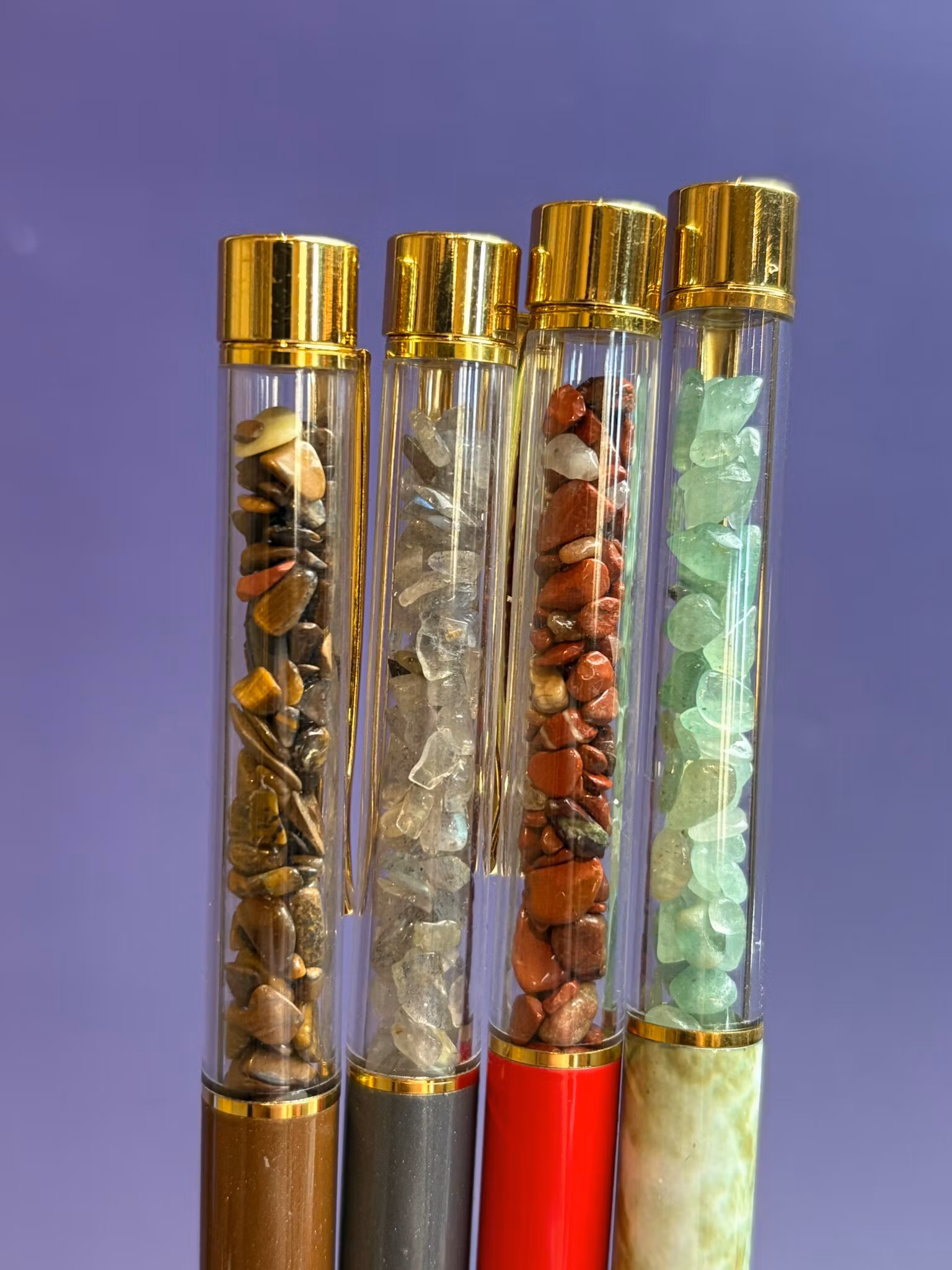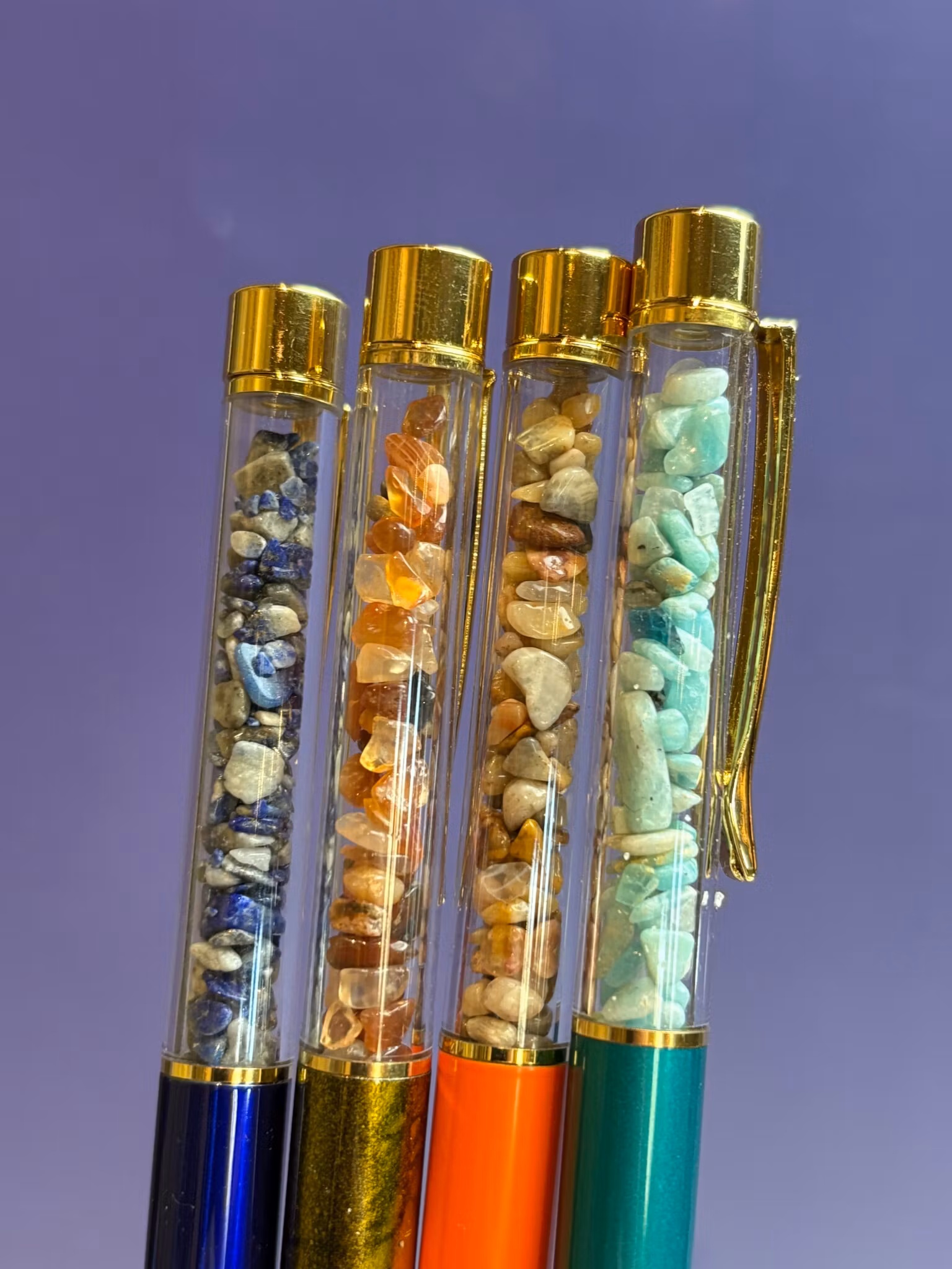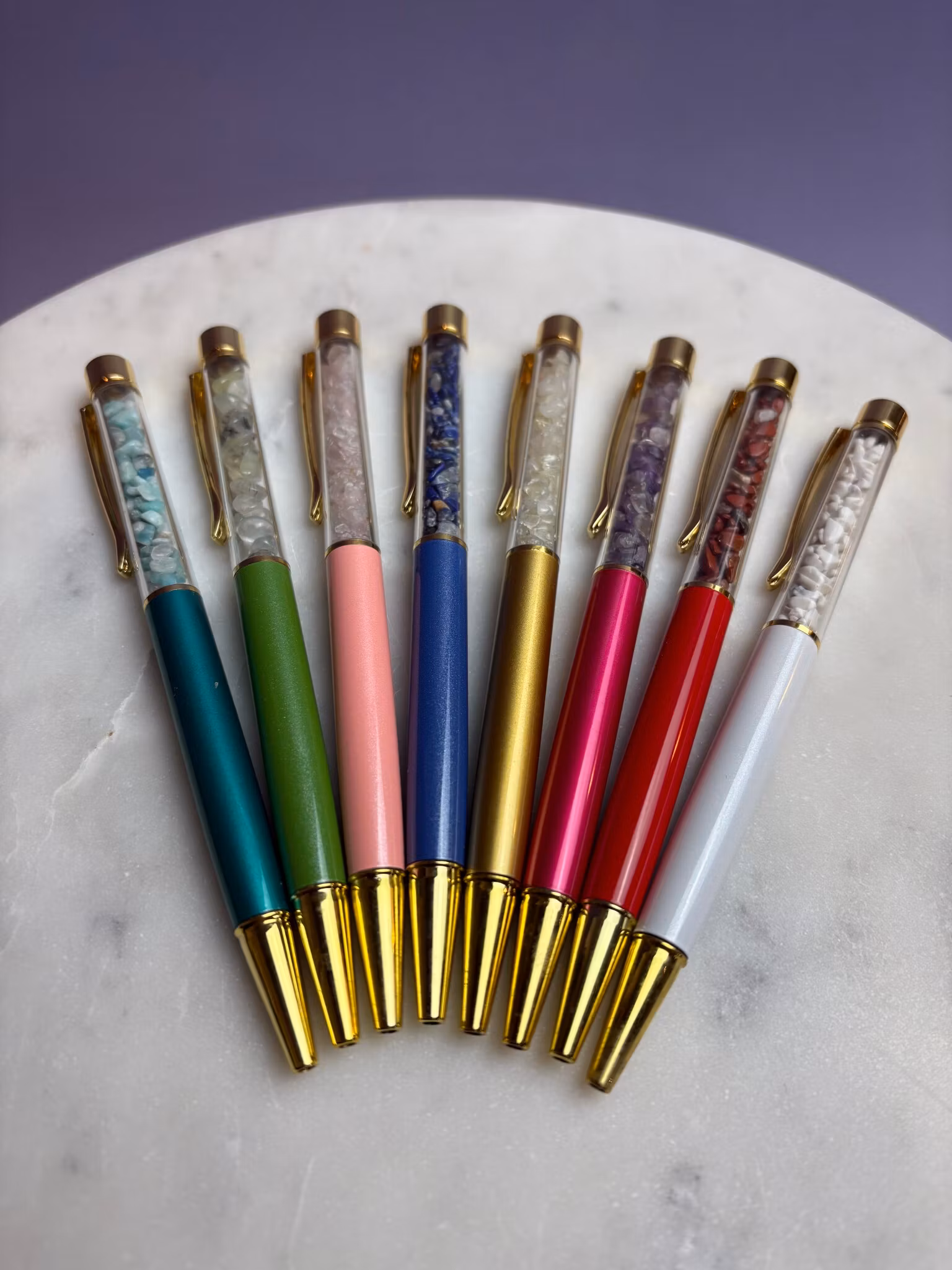Bläckpenna i olika färger med underbara kristallchips i toppen.