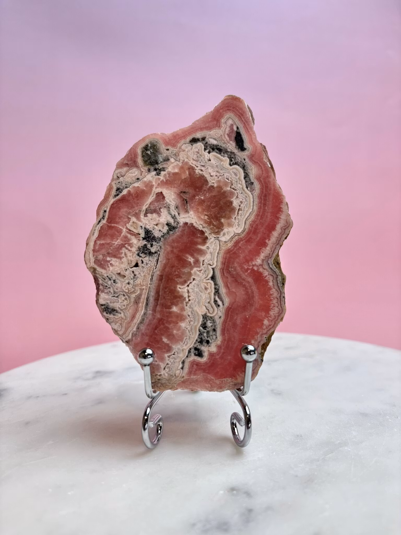 Rodokrosit är som en gnista av ren kärlek – intensiv, passionerad och djupt helande. Denna magiska sten sägs vara känd för att öppna hjärtat, lösa upp gamla sår och bjuda in glädje, självacceptans och kärlek i alla dess former. Om du är redo att släppa taget om det förflutna och leva med mer kärlek, livsglädje och inre styrka, då kan rodokrosit vara din perfekta följeslagare!