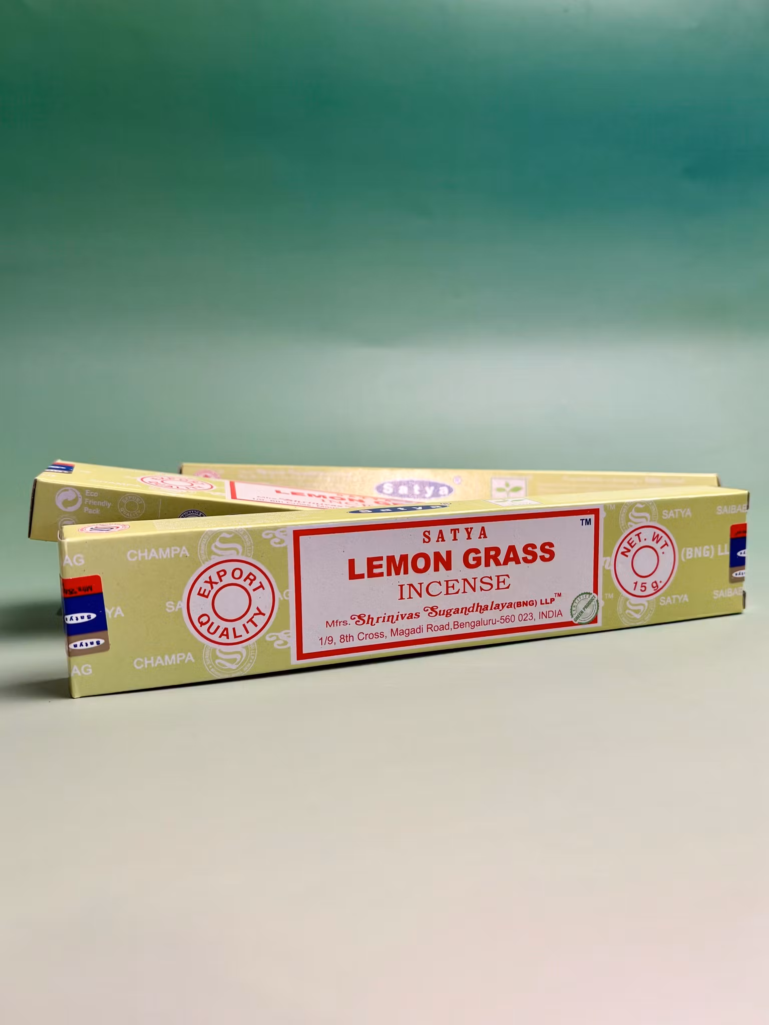 Om Lemon grass: Satya Lemon Grass-rökelsen har en livlig och citrusaktig doft med inslag av fräscha, örtiga toner. Citrongräs är känt för sina renande och upplyftande egenskaper, vilket gör denna rökelse perfekt för att skapa en energigivande och harmonisk atmosfär. Idealisk för meditation, avslappning eller för att fräscha upp ditt hem med en naturligt fräsch doft.