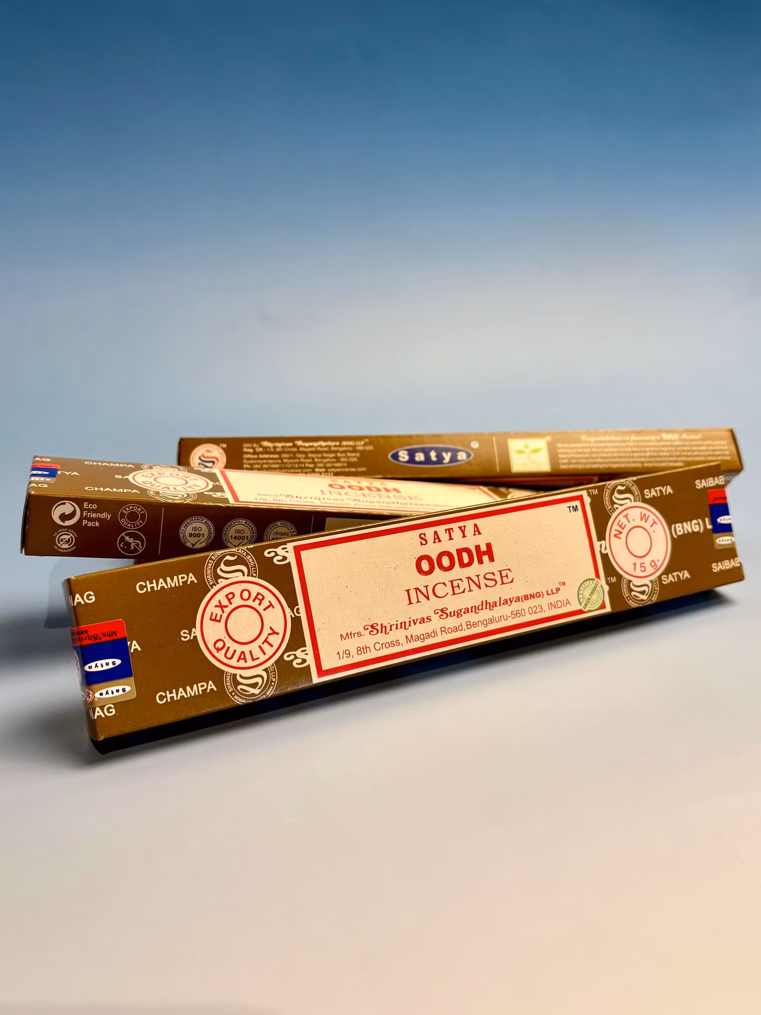 Om Oohd: Satya Oodh-rökelsen har en djup, träig och lätt söt doft med rika, balsamiska toner och en touch av kryddor. Inspirerad av den exklusiva agarwood (oudh), skapar denna rökelse en varm, mystisk och sofistikerad atmosfär. Perfekt för meditation, avkoppling eller för att ge ditt utrymme en lyxig och spirituell känsla.