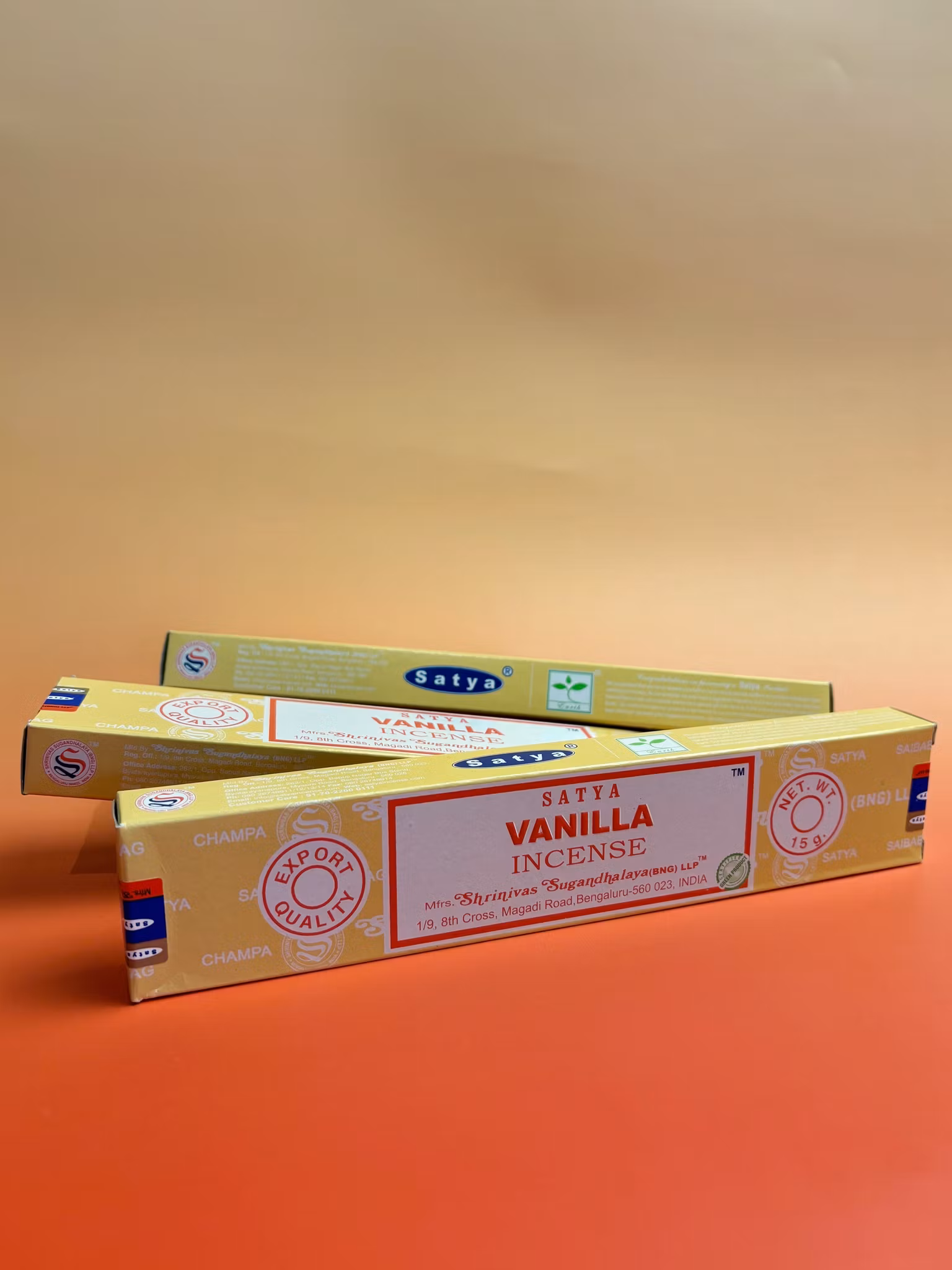 Om Vanilla: Satya Vanilla-rökelsen har en mjuk, söt och krämig doft med inslag av äkta vanilj, milda kryddor och ett subtilt träigt djup. Den skapar en varm och omfamnande atmosfär som ger en känsla av trygghet och harmoni. Perfekt för avkoppling, meditation eller för att sprida en behaglig doft i ditt hem.