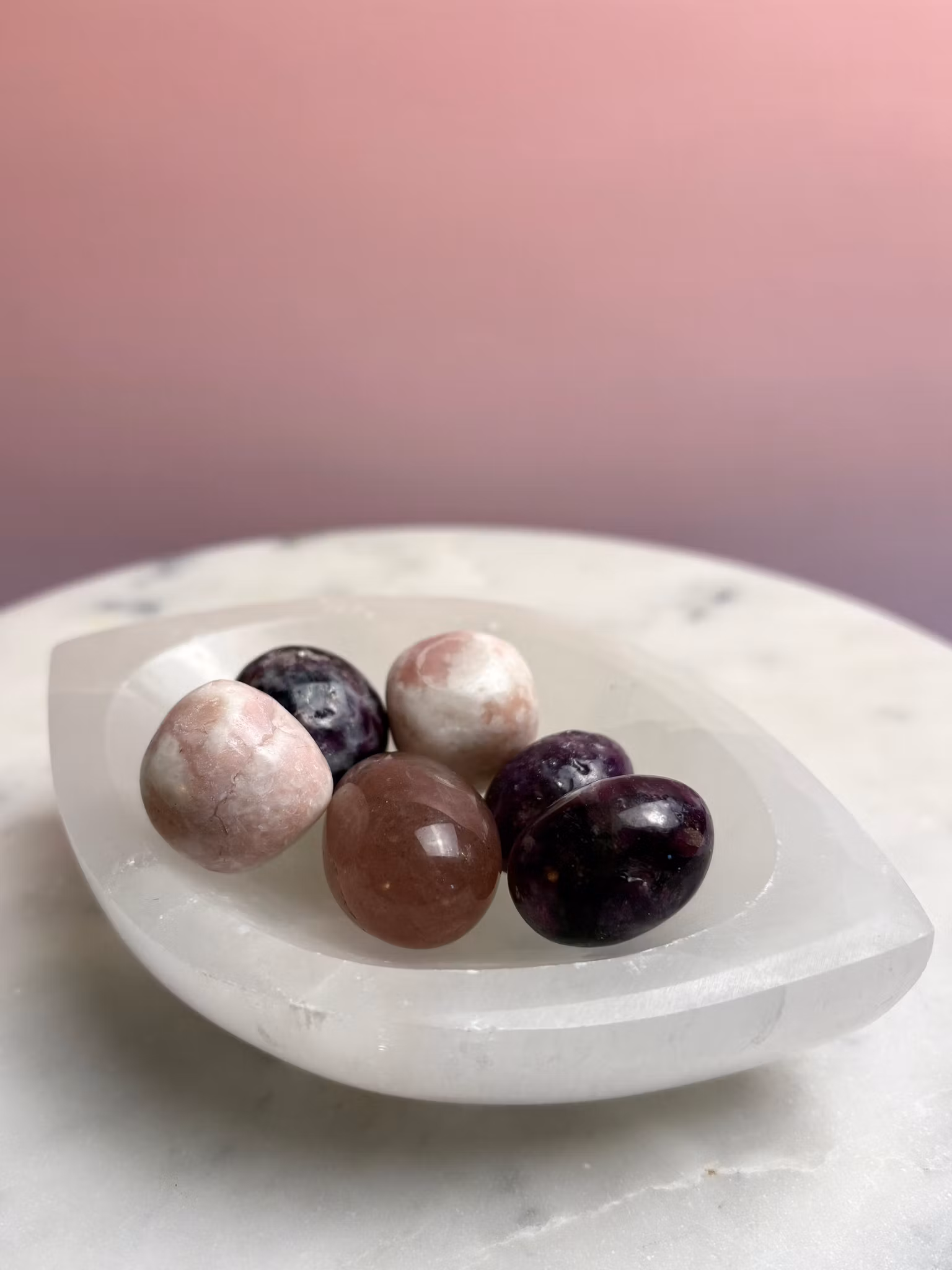 Selenit fungerar som en kristallrensare - därför är en skål i Selenit perfekt för att placera dina andra kristaller i för att återställa deras energi och rengöra dem från negativitet. För att hålla hemmet rent från negativ energi, placera selenit på ställen som fönsterbrädor eller i varje rum. Eftersom den har en stark renande effekt är den perfekt för att skapa en harmonisk och fridfull atmosfär.