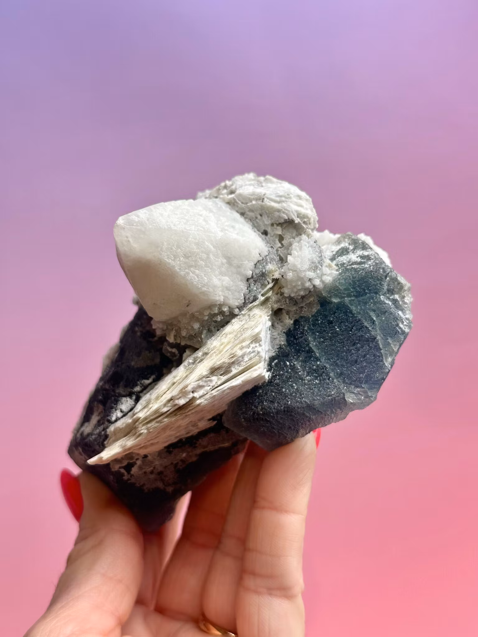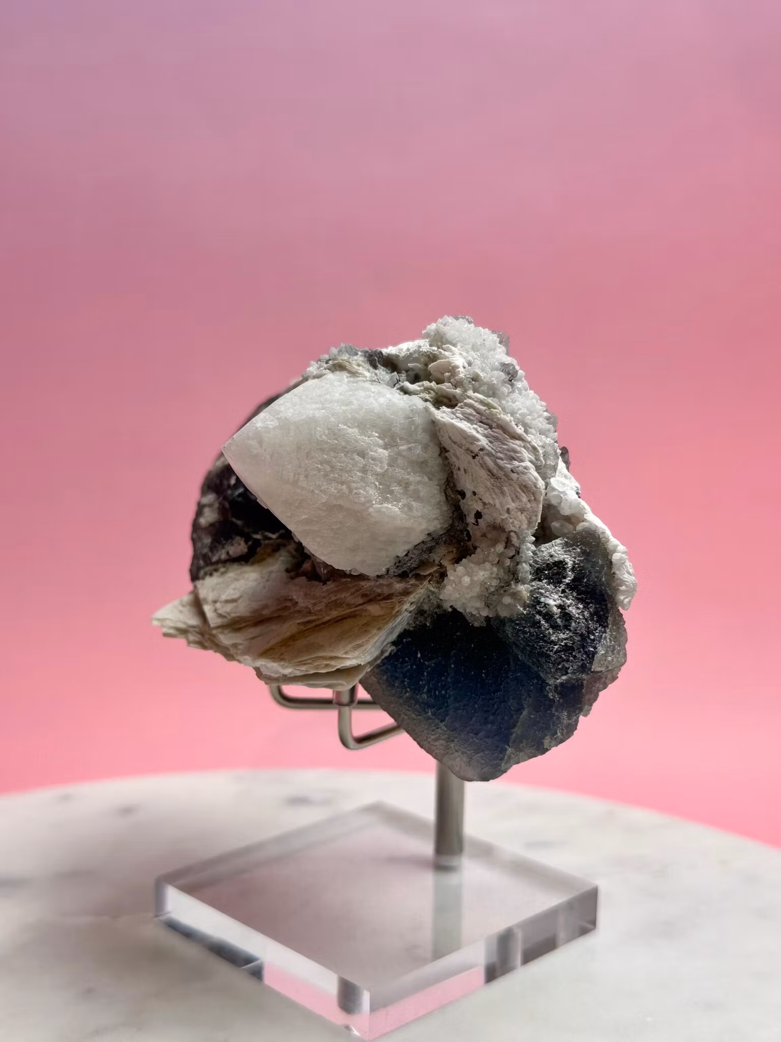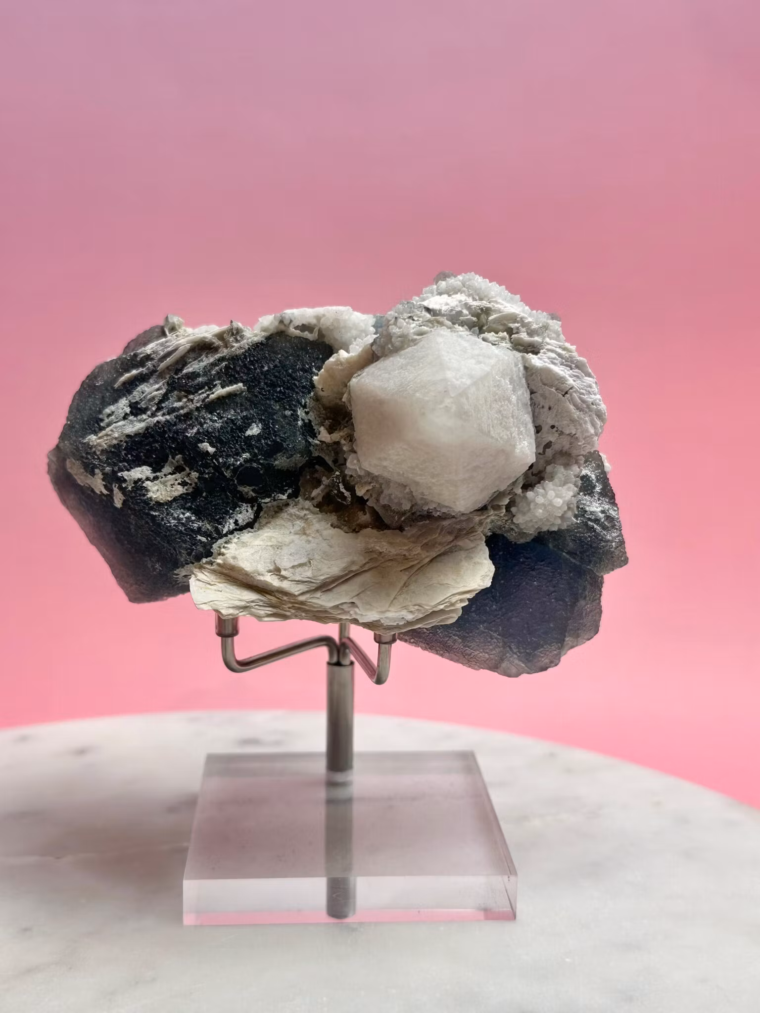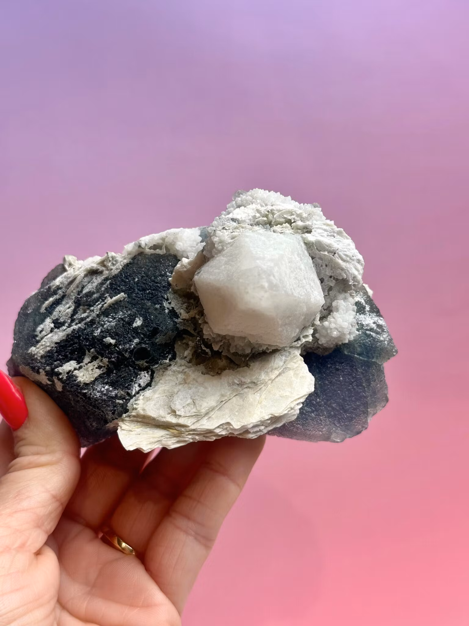 Ett unikt kluster med Bå fluorit i högsta kvalitet med kalcit.