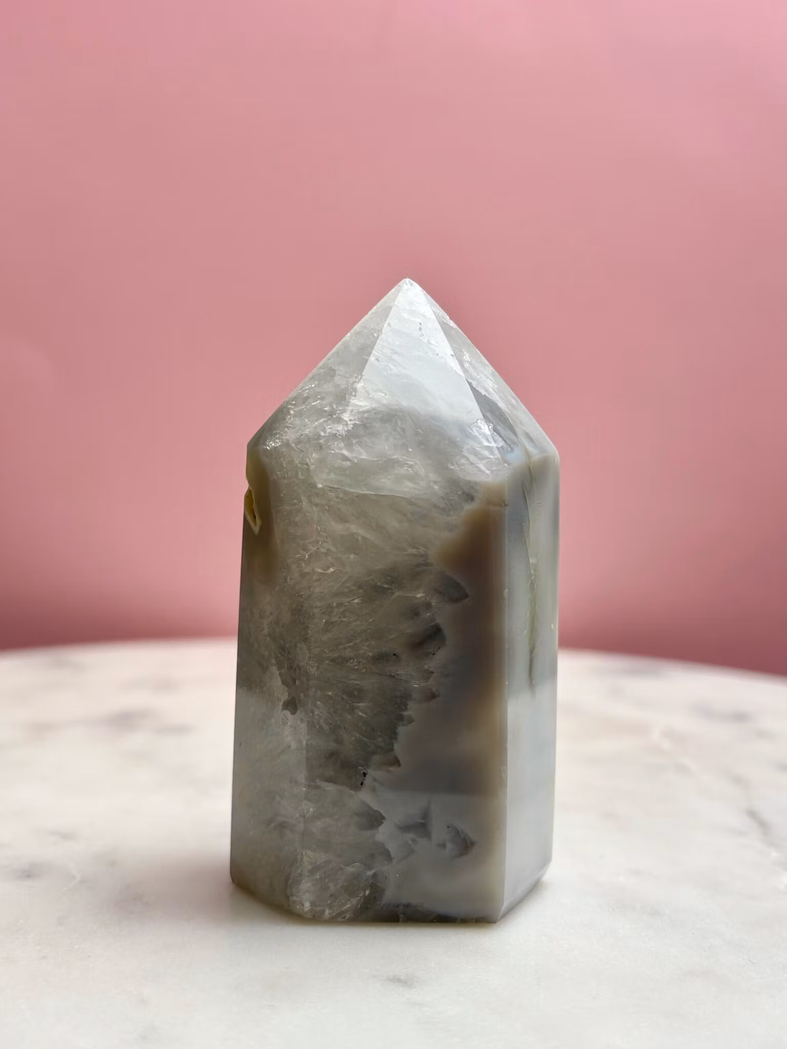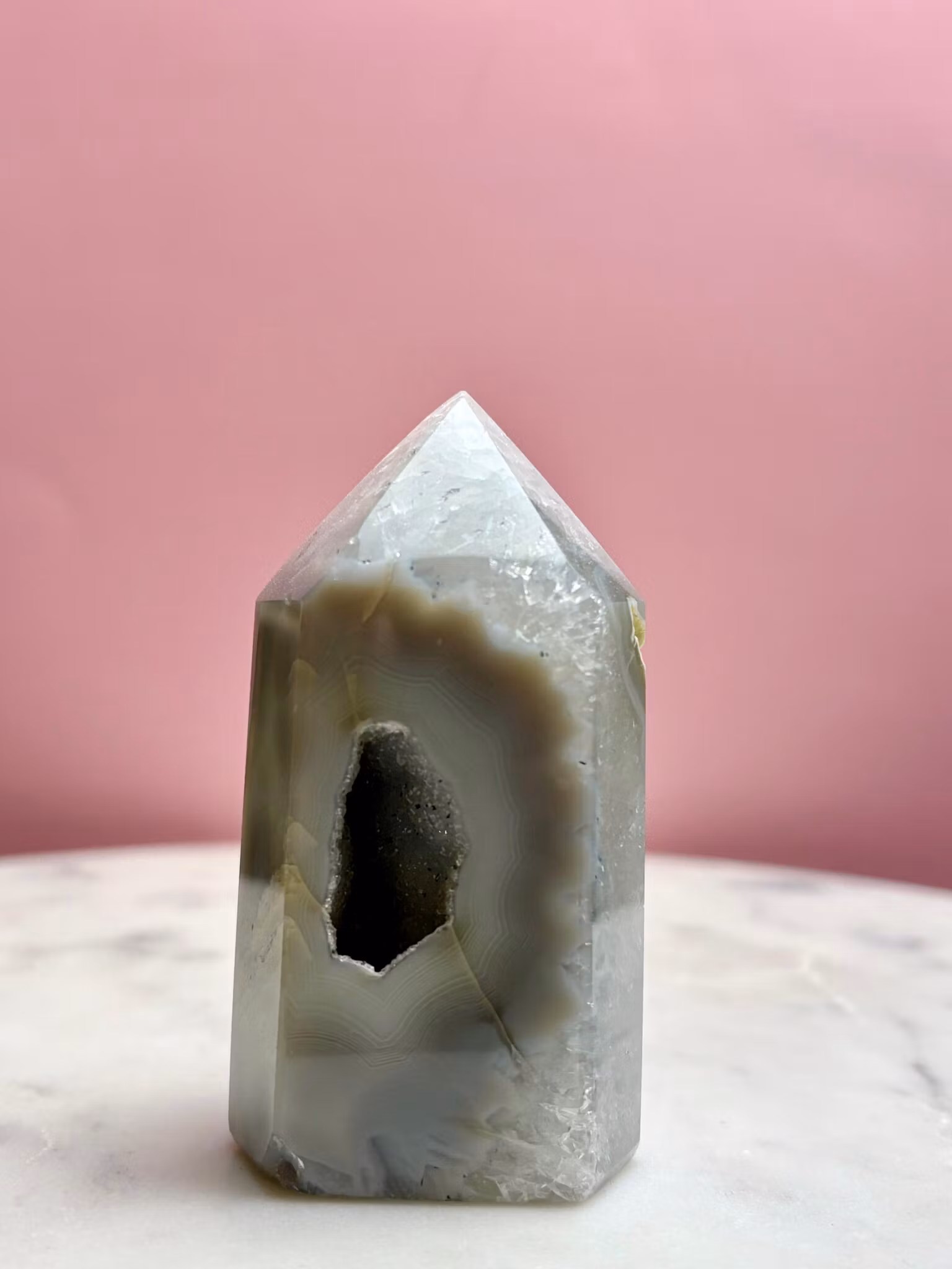 Agat är känd som en jordande sten som hjälper dig att finna lugn i en hektisk värld. Dess milda men kraftfulla energi verkar långsamt och stabiliserar känslor, vilket gör den perfekt för dig som söker inre frid och mental klarhet. Bär den som en kraftkälla. Placera den i ditt hem. Låt agat guida dig till ett liv i harmoni.