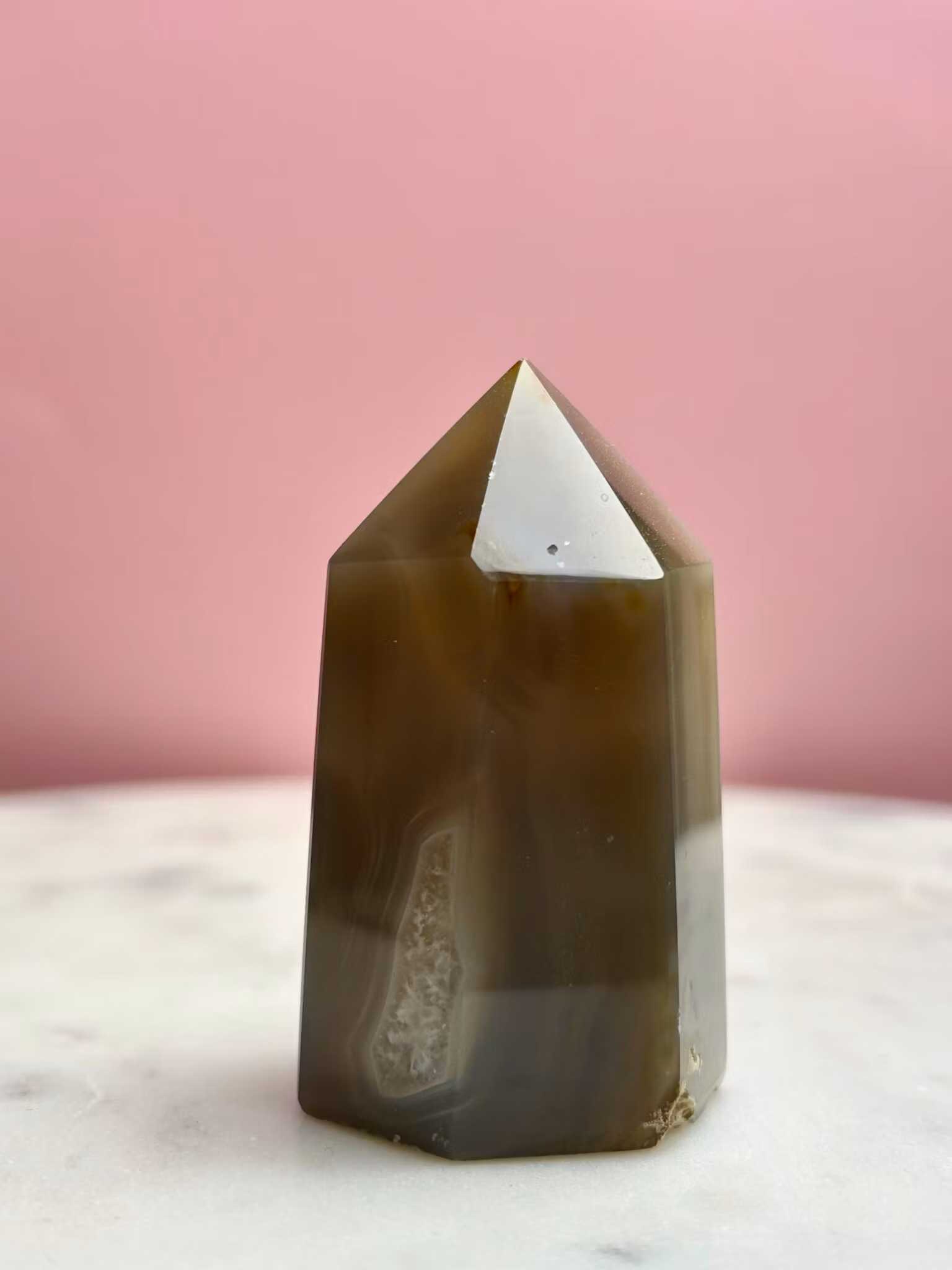 Agat är känd som en jordande sten som hjälper dig att finna lugn i en hektisk värld. Dess milda men kraftfulla energi verkar långsamt och stabiliserar känslor, vilket gör den perfekt för dig som söker inre frid och mental klarhet. Bär den som en kraftkälla. Placera den i ditt hem. Låt agat guida dig till ett liv i harmoni.