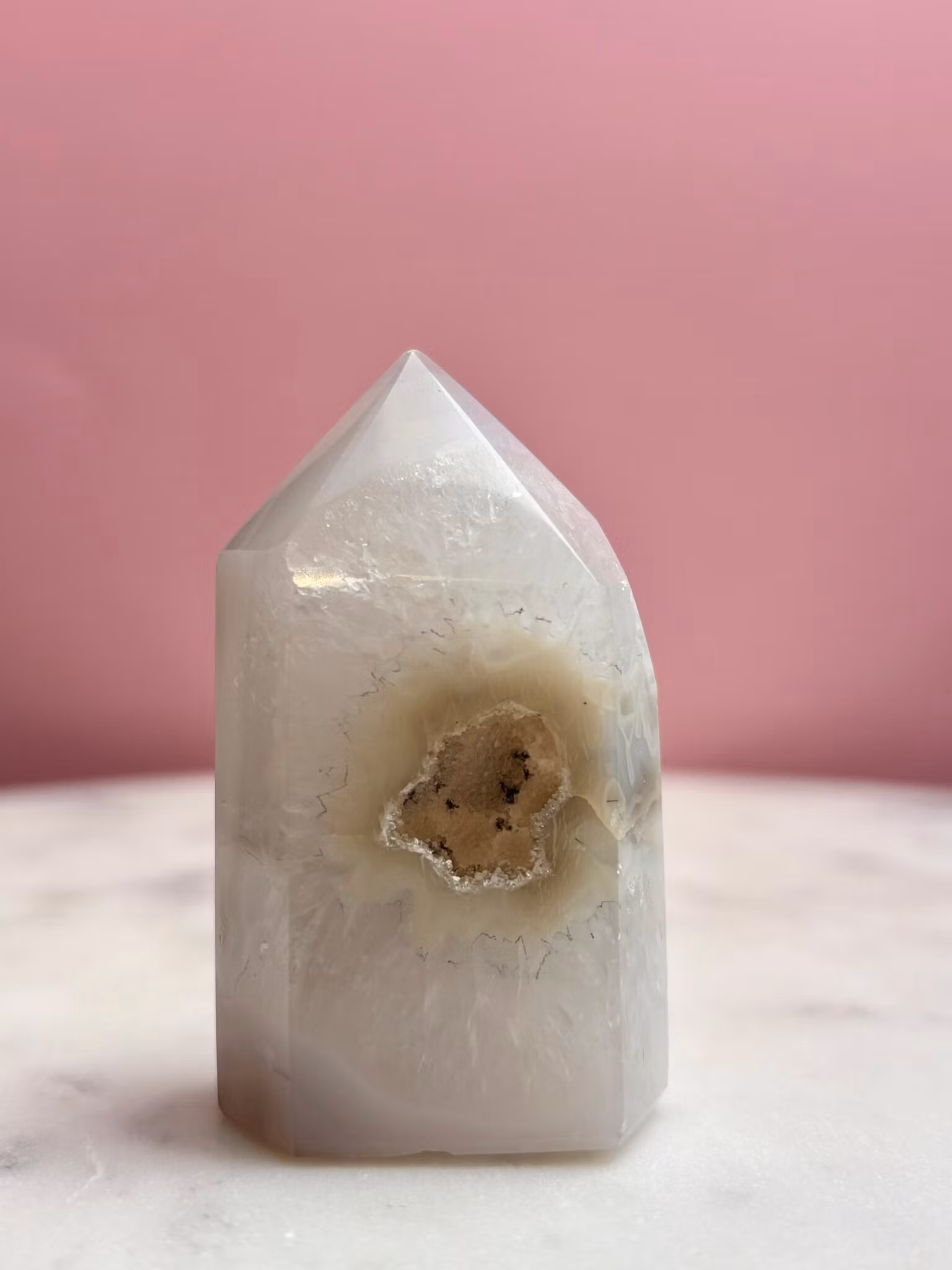 Agat är känd som en jordande sten som hjälper dig att finna lugn i en hektisk värld. Dess milda men kraftfulla energi verkar långsamt och stabiliserar känslor, vilket gör den perfekt för dig som söker inre frid och mental klarhet. Bär den som en kraftkälla. Placera den i ditt hem. Låt agat guida dig till ett liv i harmoni.