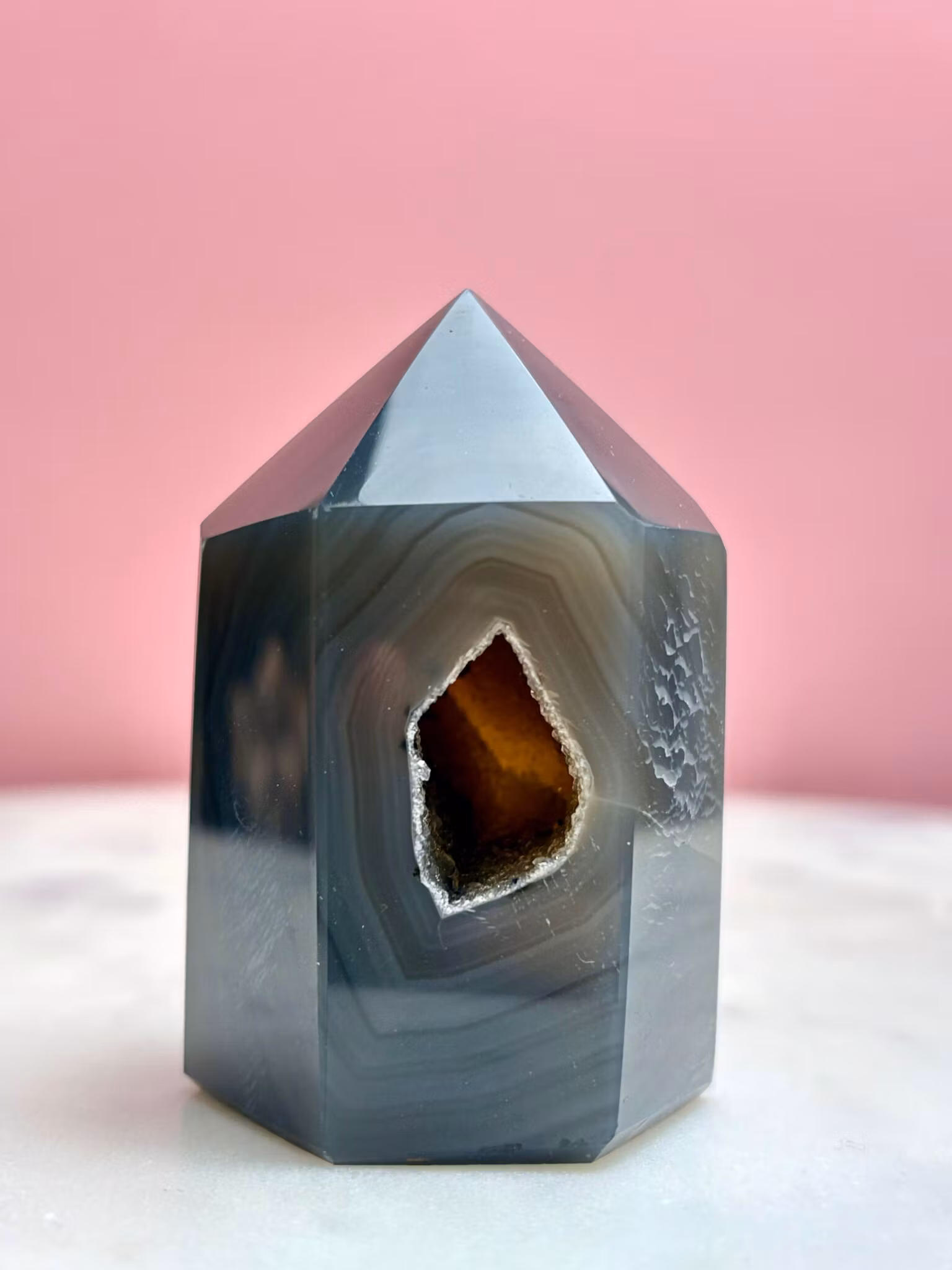 Agat är känd som en jordande sten som hjälper dig att finna lugn i en hektisk värld. Dess milda men kraftfulla energi verkar långsamt och stabiliserar känslor, vilket gör den perfekt för dig som söker inre frid och mental klarhet. Bär den som en kraftkälla. Placera den i ditt hem. Låt agat guida dig till ett liv i harmoni.