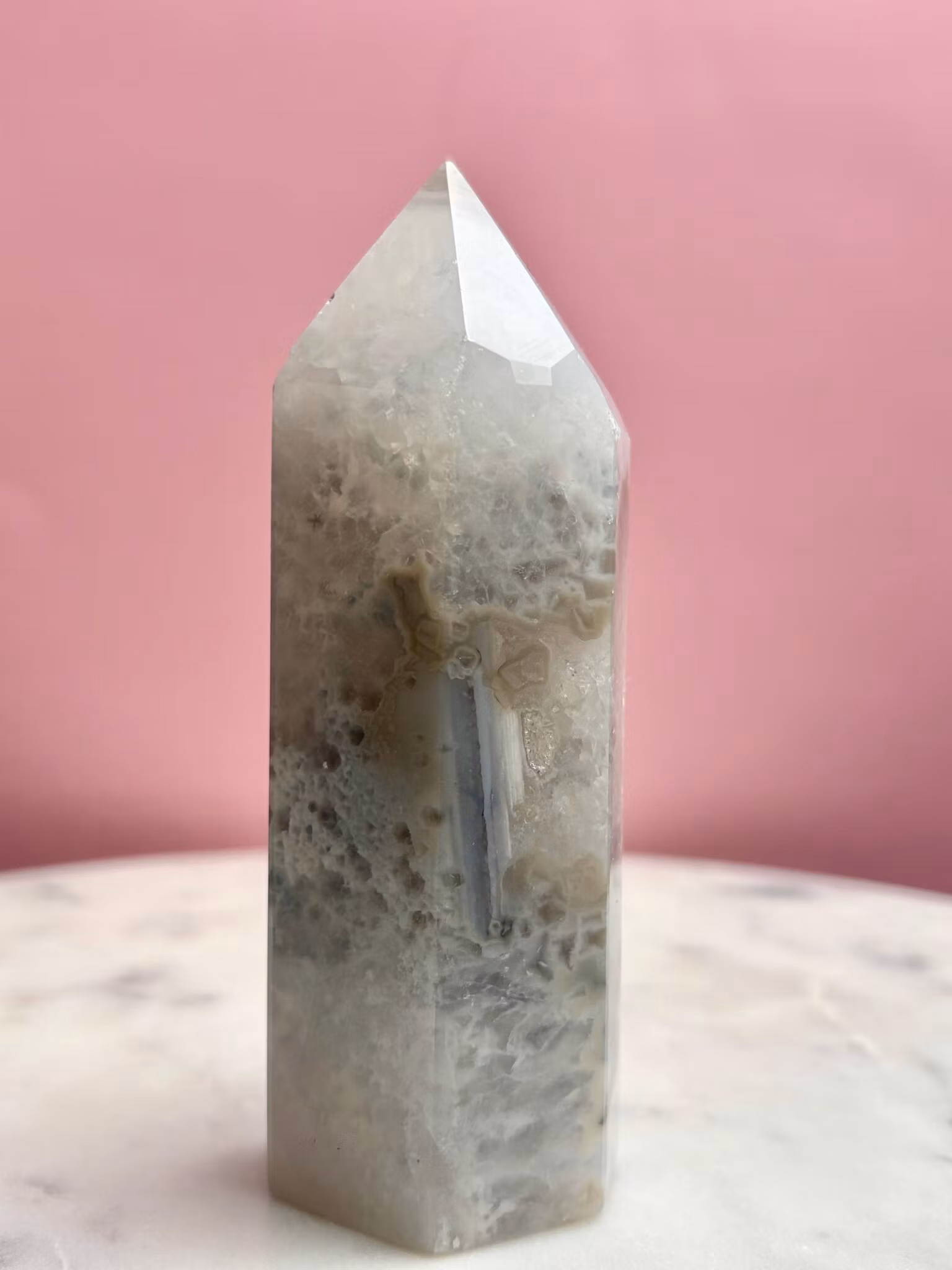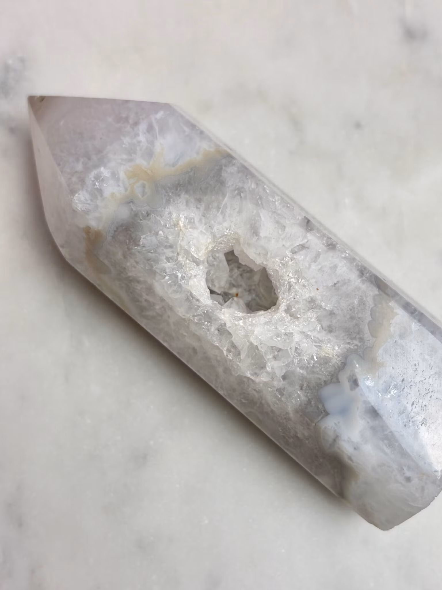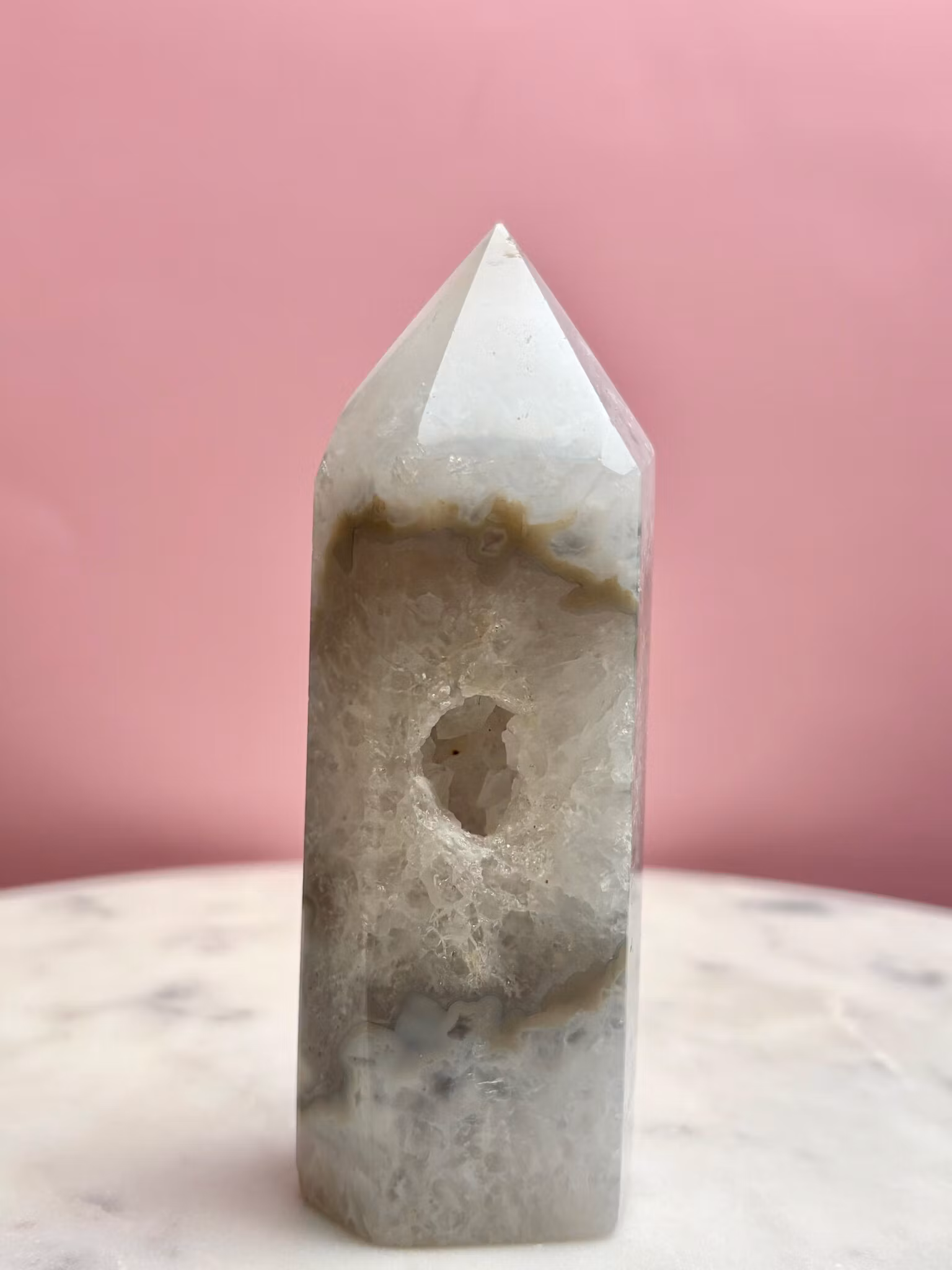 Agat är känd som en jordande sten som hjälper dig att finna lugn i en hektisk värld. Dess milda men kraftfulla energi verkar långsamt och stabiliserar känslor, vilket gör den perfekt för dig som söker inre frid och mental klarhet. Bär den som en kraftkälla. Placera den i ditt hem. Låt agat guida dig till ett liv i harmoni.