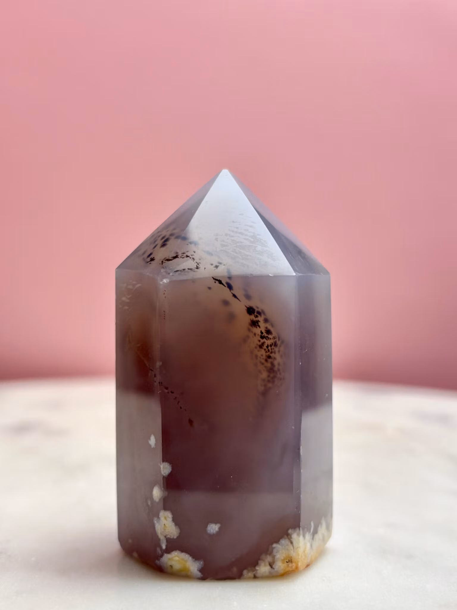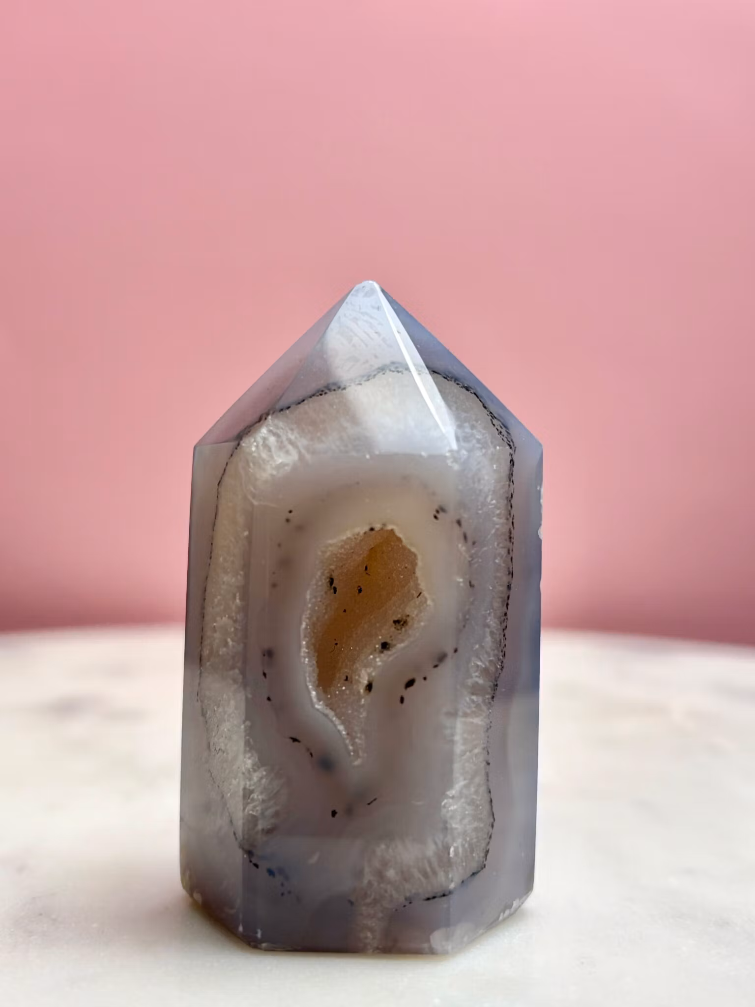 Agat är känd som en jordande sten som hjälper dig att finna lugn i en hektisk värld. Dess milda men kraftfulla energi verkar långsamt och stabiliserar känslor, vilket gör den perfekt för dig som söker inre frid och mental klarhet. Bär den som en kraftkälla. Placera den i ditt hem. Låt agat guida dig till ett liv i harmoni.