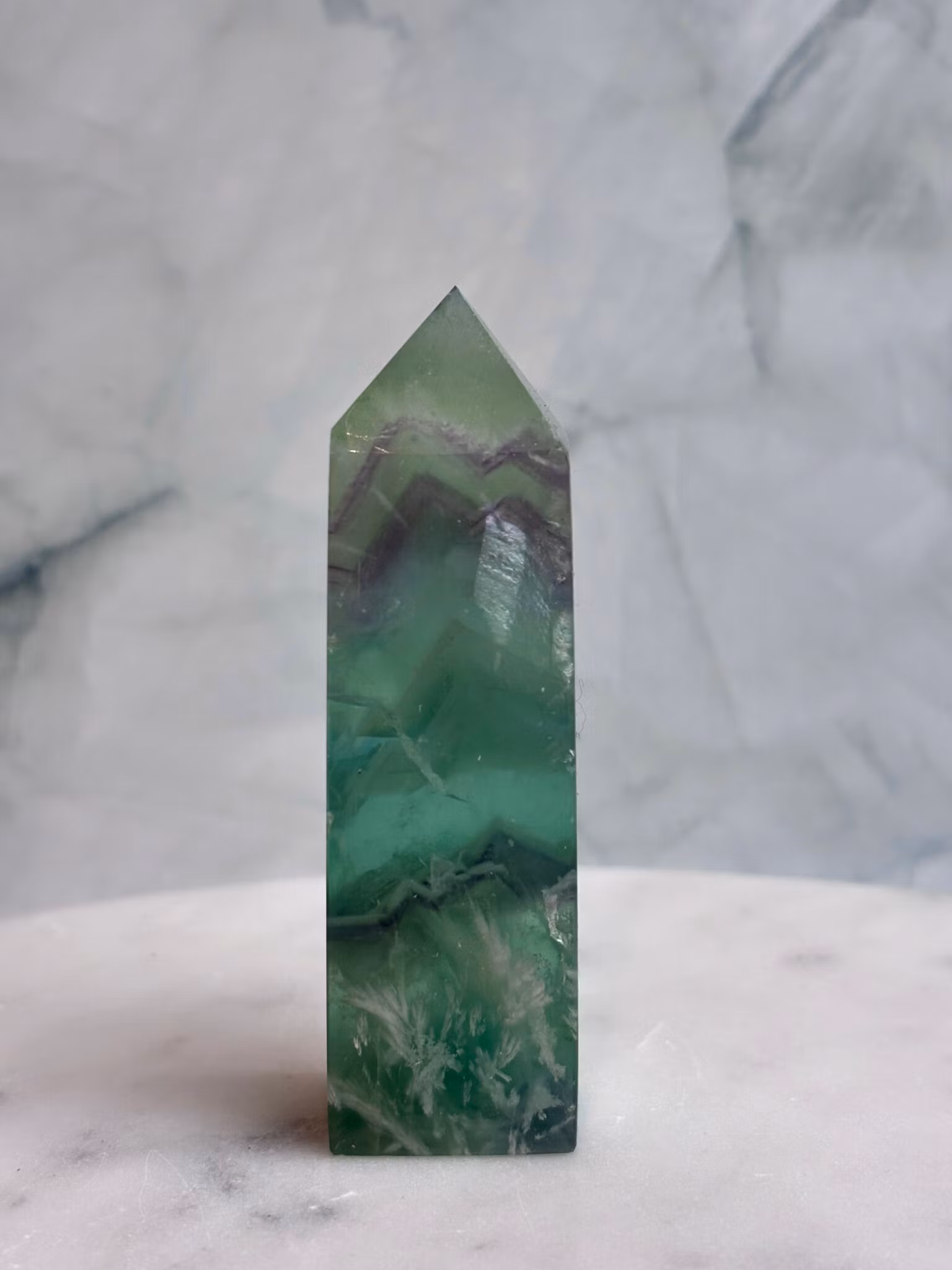 Fluorit är en kraftfull kristall som är känd för sina klara och livfulla färger, som en färgsprakande vägvisare. Fluorits klara och levande nyanser påminner om naturens magi och kan vara allt från djup lila, smaragdgrön, himmelsblå och solgul till helt genomskinlig. Fluoriten sägs hjälpa dig att skärpa ditt fokus och sortera dina tankar när livet känns överväldigande.
