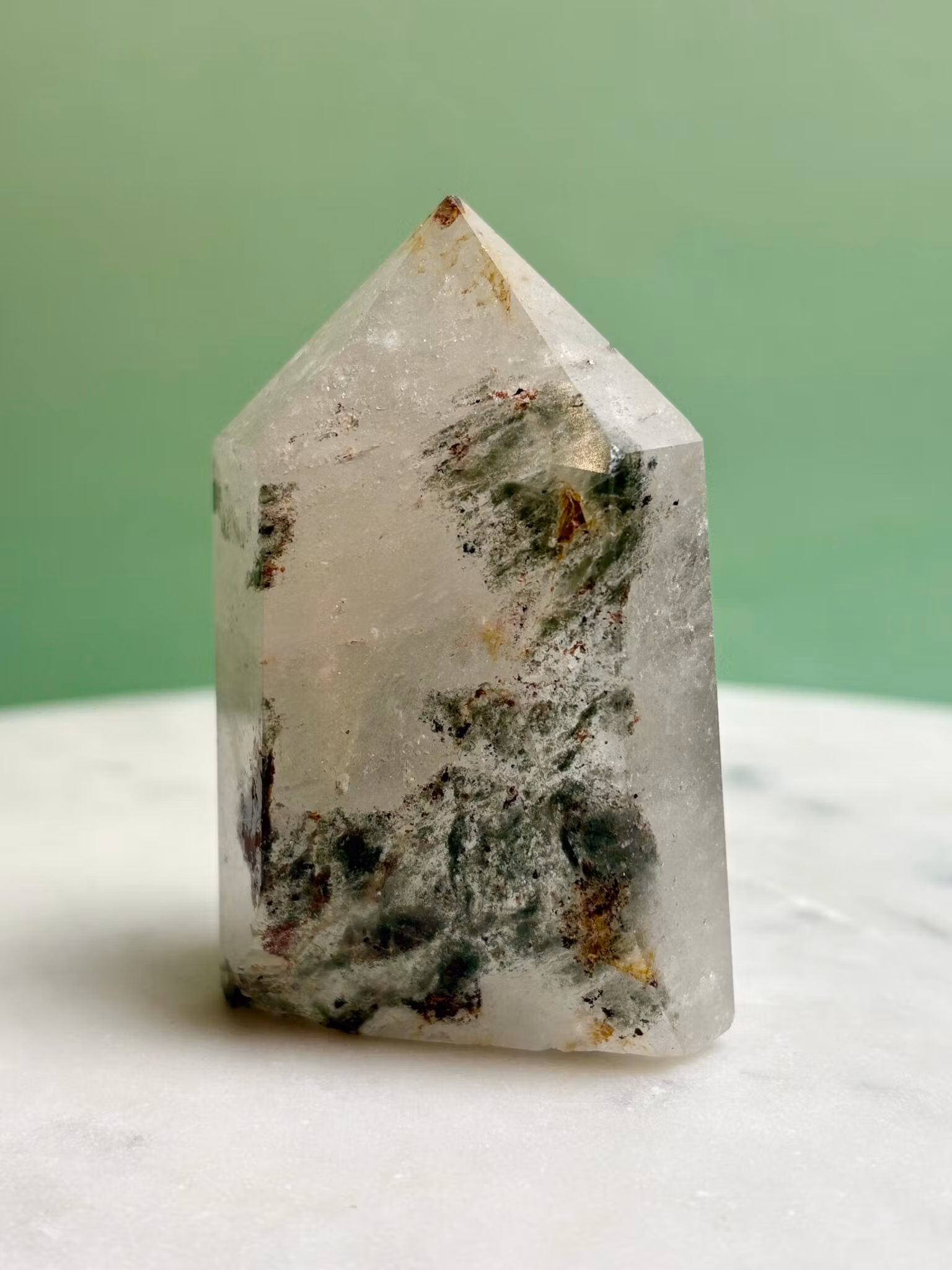 Tänk på att kristaller och stenar kommer från naturen och naturliga sprickor och ojämnheter kan därför förekomma. Även variationer i färg kan förekomma beroende på hur ljuset faller på kristallen och mellan olika bildskärmar.