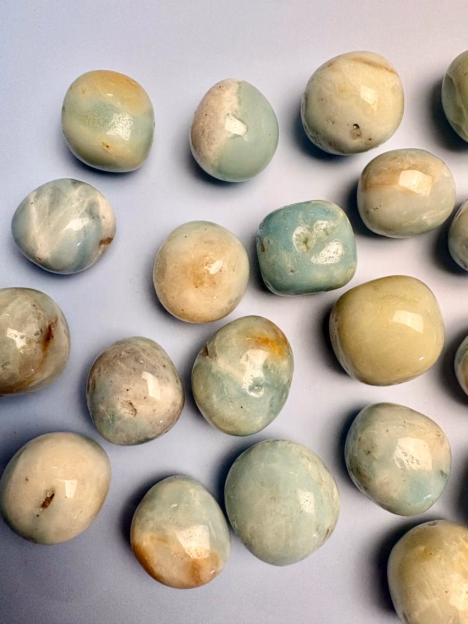 Karibisk kalcit är en lugnande kristall med hög vibration som kan hjälpa dig att höja ditt medvetande. Den främjar emotionell läkning, kreativitet och lindrar stress samt bringar mental klarhet.