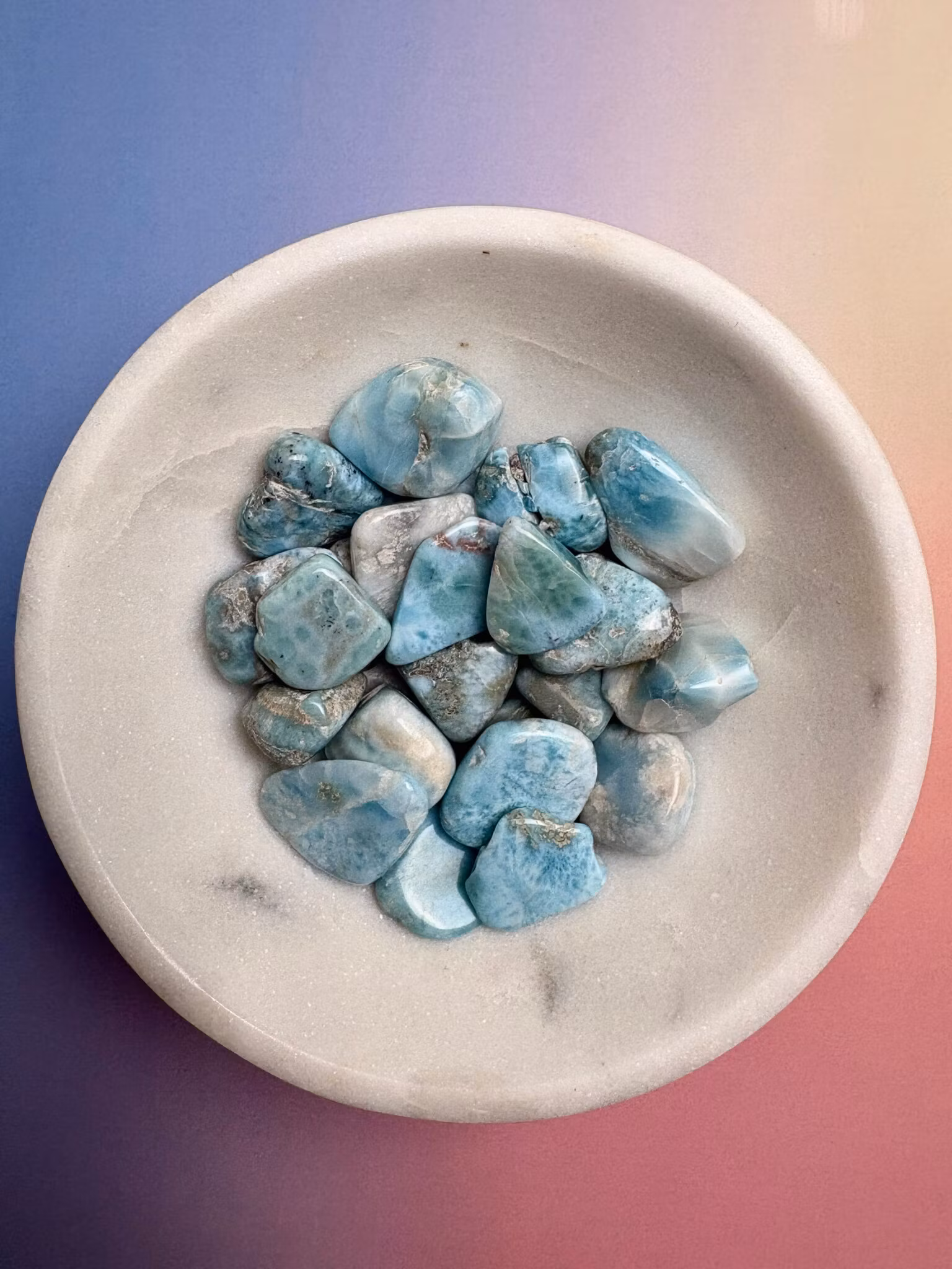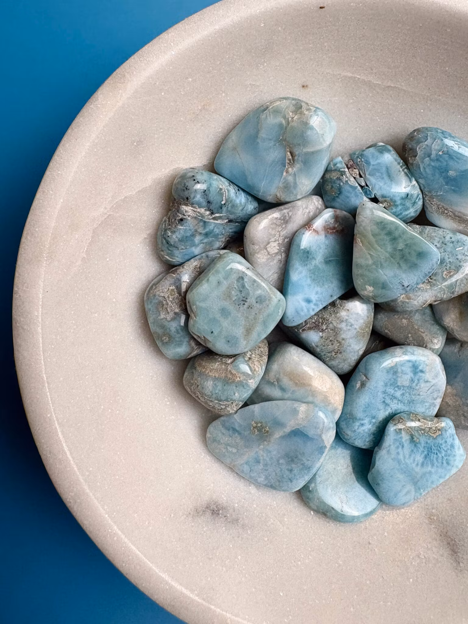 Larimar är en andlig och sällsynt kristall som enbart finns i Dominikanska republiken. Med sitt unika ursprung och sina starka vibrationer erbjuder larimar både fysiskt och andligt stöd, vilket gör den till en idealisk kristall för healing och inre harmoni. Larimar hjälper till att öppna upp nya dimensioner och stimulerar en personlig utveckling. Kristallen ökar det naturliga medvetandet och skapar harmoni i kroppen med hjälp av vibrationer samt minskar på stressen.