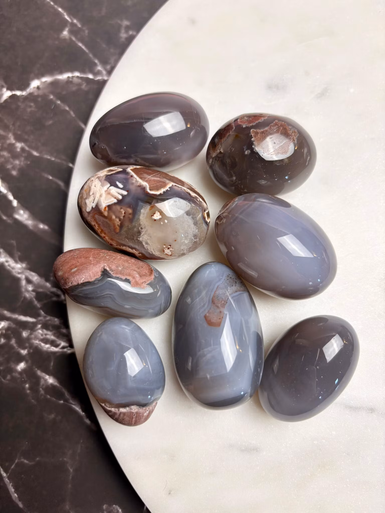 “Vulkanagaten är en nyfunnet kristall som sägs kunna hjälpa den som är i behov av stabilitet och grundning då den renar och stabiliserar auran. Kristallen hjälper människan att släppa ilskan, ångesten och gör relationerna mer harmoniska.”