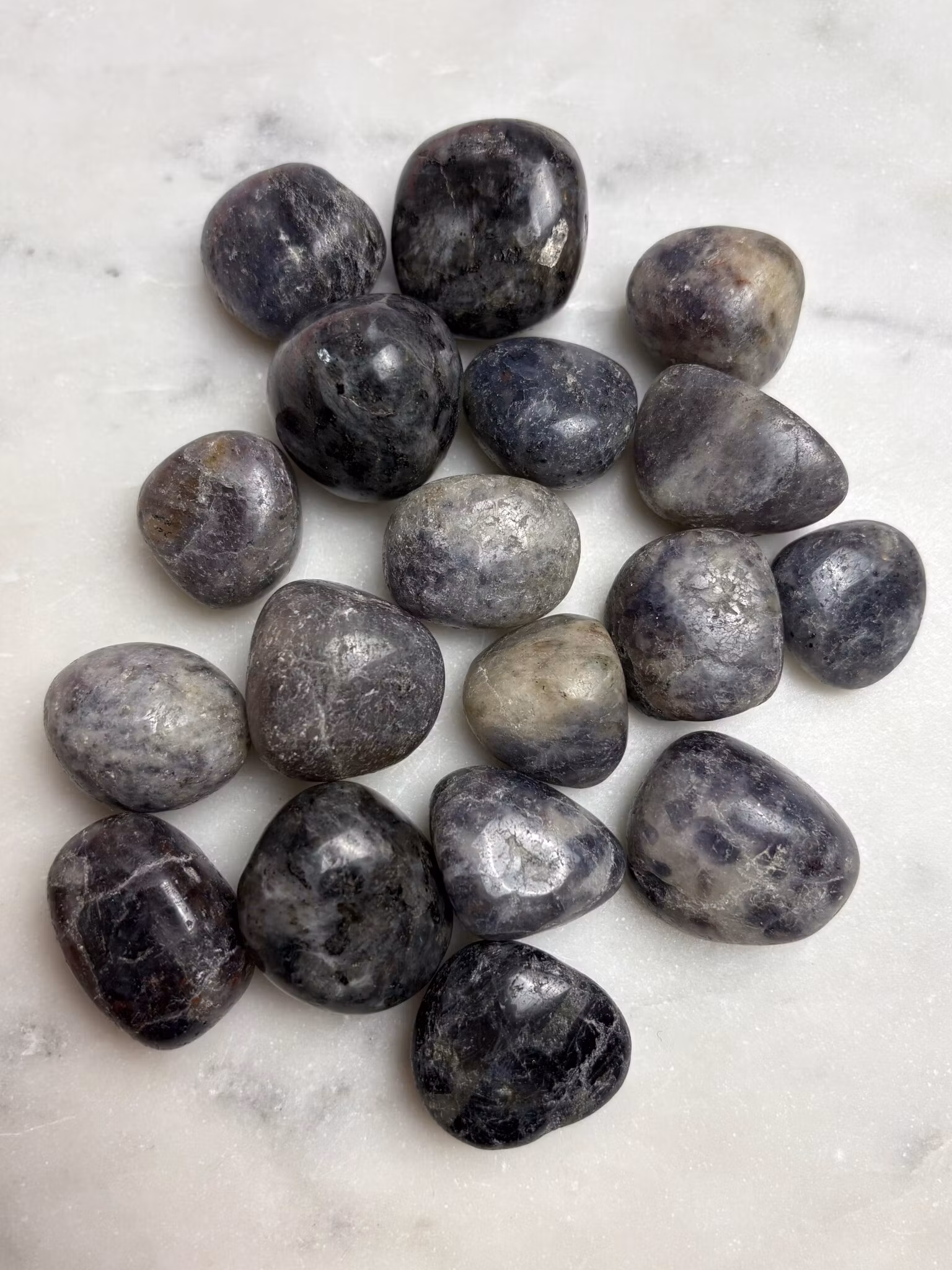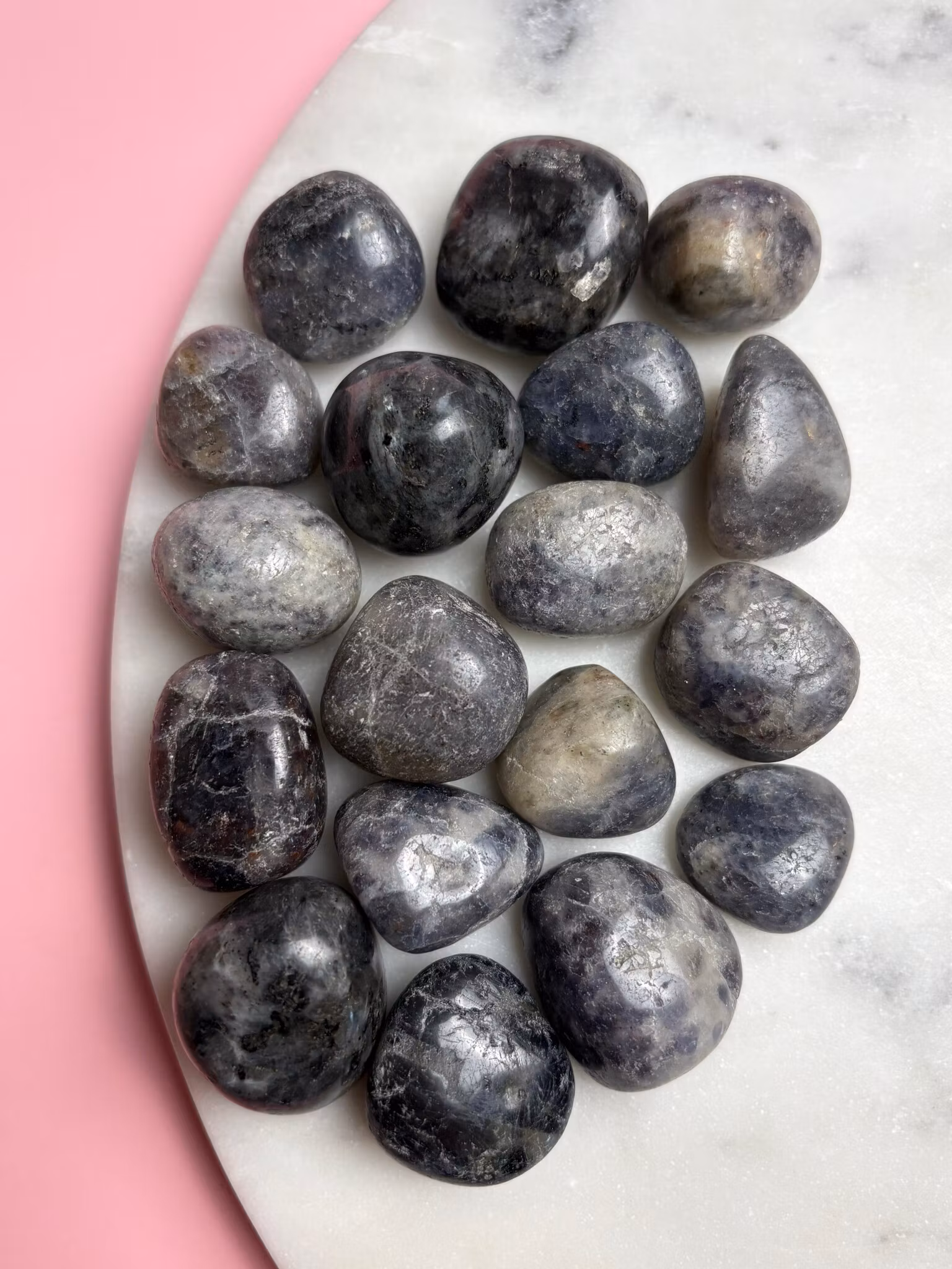"Ioliten symboliserar en stark intuition och spiritualitet samt är en sten för det tredje ögat. Det sägs att denna kristall är lugnande och är kapabel till att ta bort känslomässig stress.”