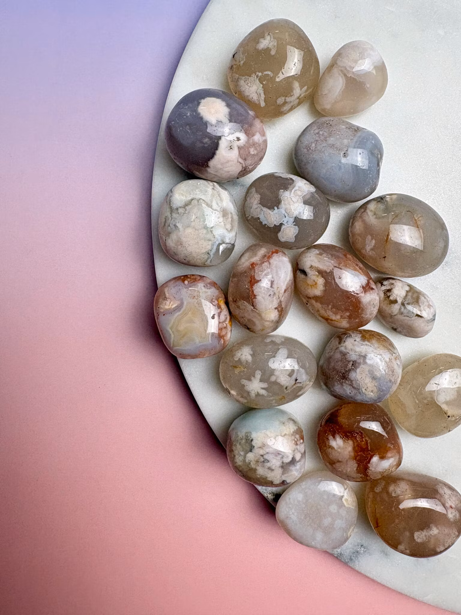 Kristall som bär på en mjuk och feminin energi som är fylld av glädje och harmoni. Den påminner oss om att livet är en resa av ständig tillväxt och att vi har kraften och är kapabla till att blomstra och nå vår fulla potential. Med sin upplyftande energi stärker kristallen vår vilja att följa våra drömmar och ger oss modet att ta oss an nya projekt eller kapitel i livet. Kristallen står därför även för nystart och hjälper oss att känna tillit till att allt ordnar sig, även under förändringens tid. Den sägs ge oss lugn och påminner oss om att vi själva formar vårt öde genom de val vi gör, och att vi alltid har makten att styra våra liv i den riktning vi önskar. Blomsteragaten är perfekt för dig som längtar efter en omstart eller behöver inspiration att våga satsa på något nytt.