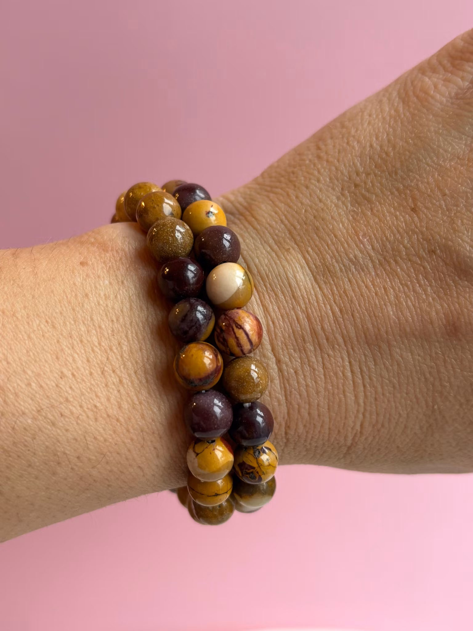 Storlek armband: 8 mm pärlor, ca 16-17 cm