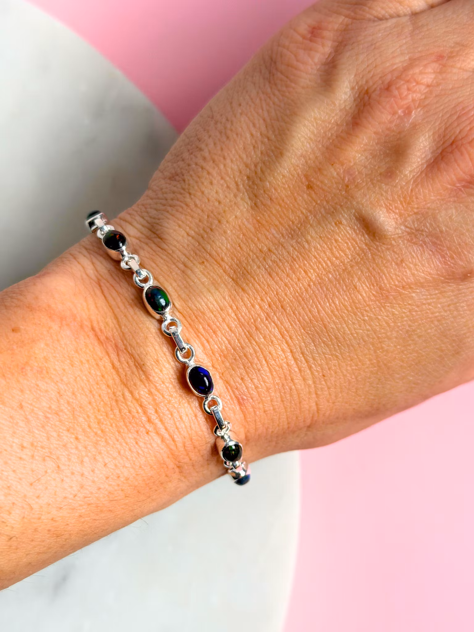 Armband i sterlingsilver och Svart opal
