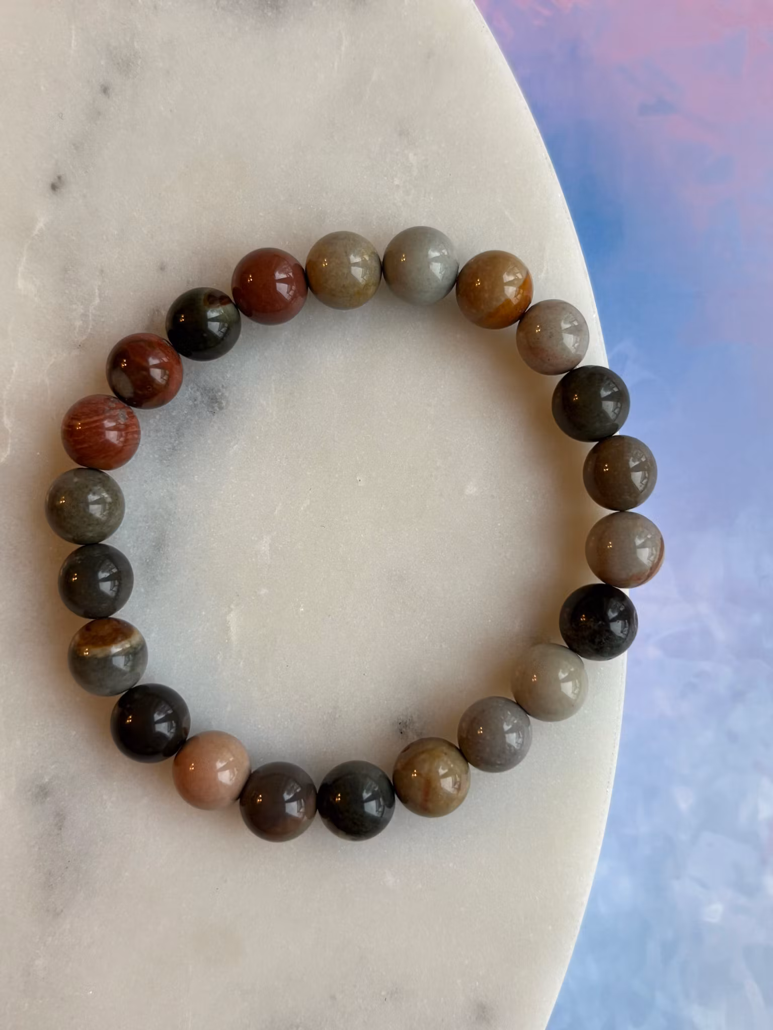 Polykrom Jaspis är en kristall som vibrerar av energi och inspiration. Den är som en påminnelse om att livet är fyllt av möjligheter – och att du har kraften att skapa ditt eget mästerverk