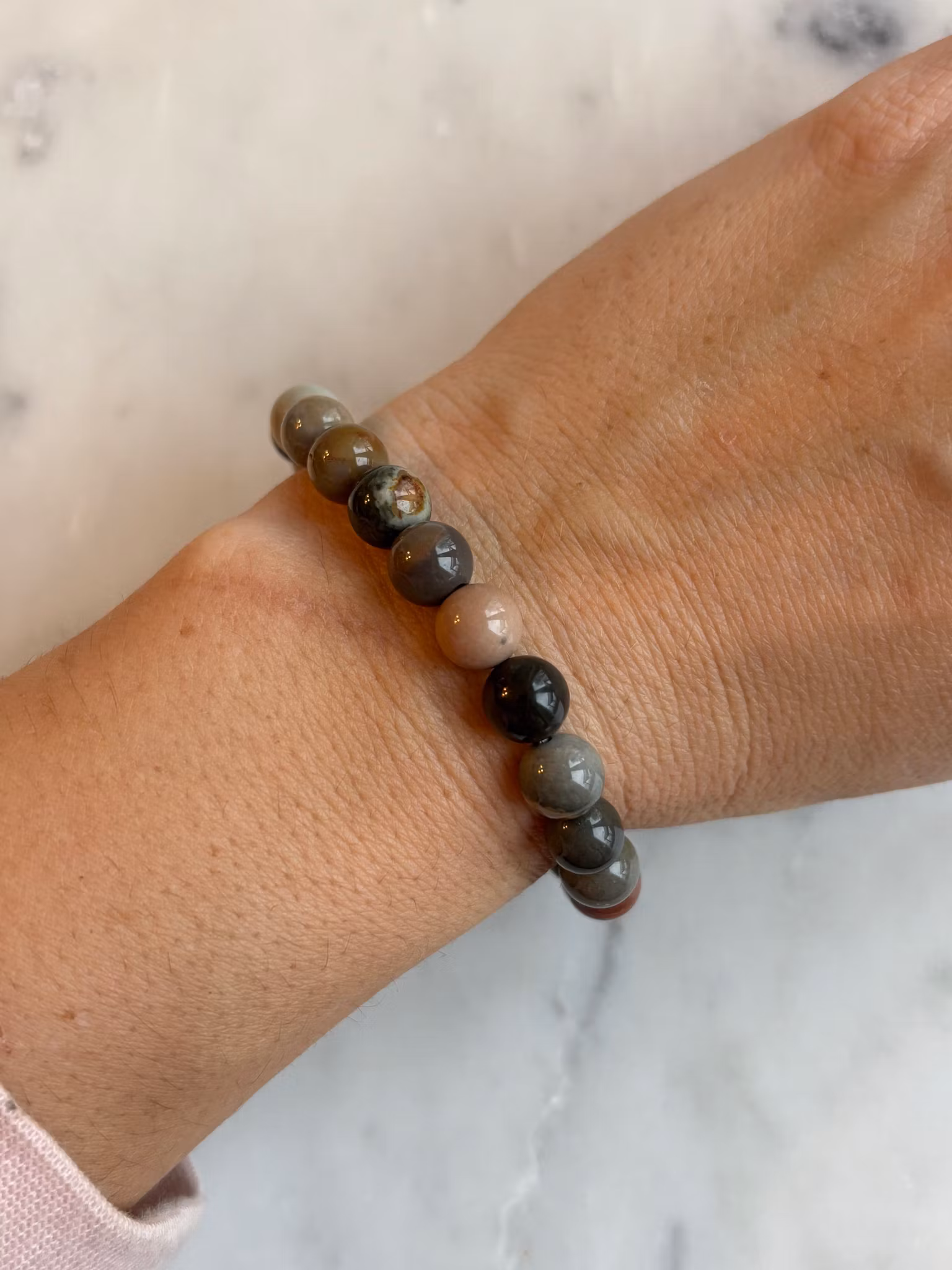 Storlek armband: 8 mm pärlor, ca 16-17 cm