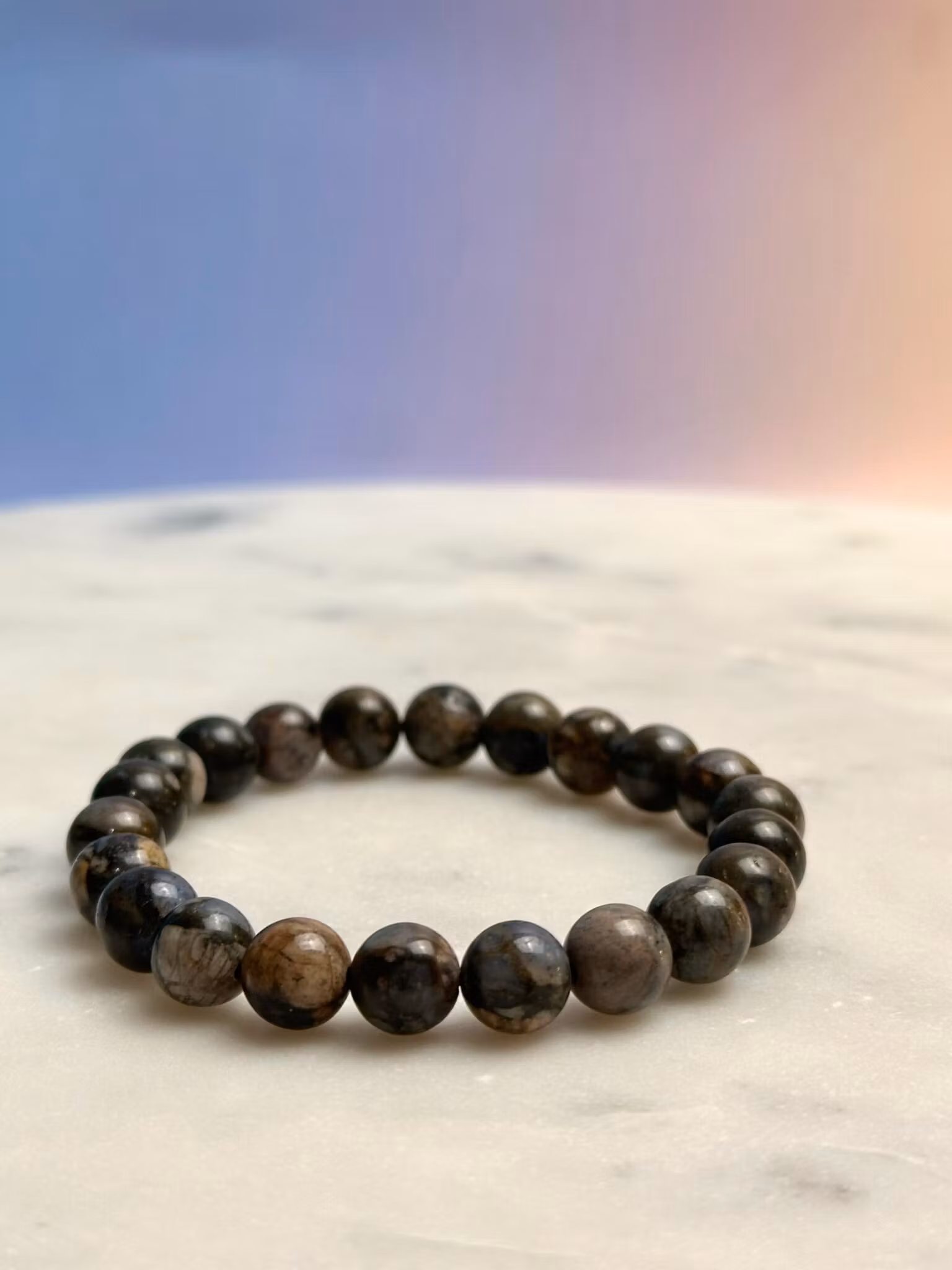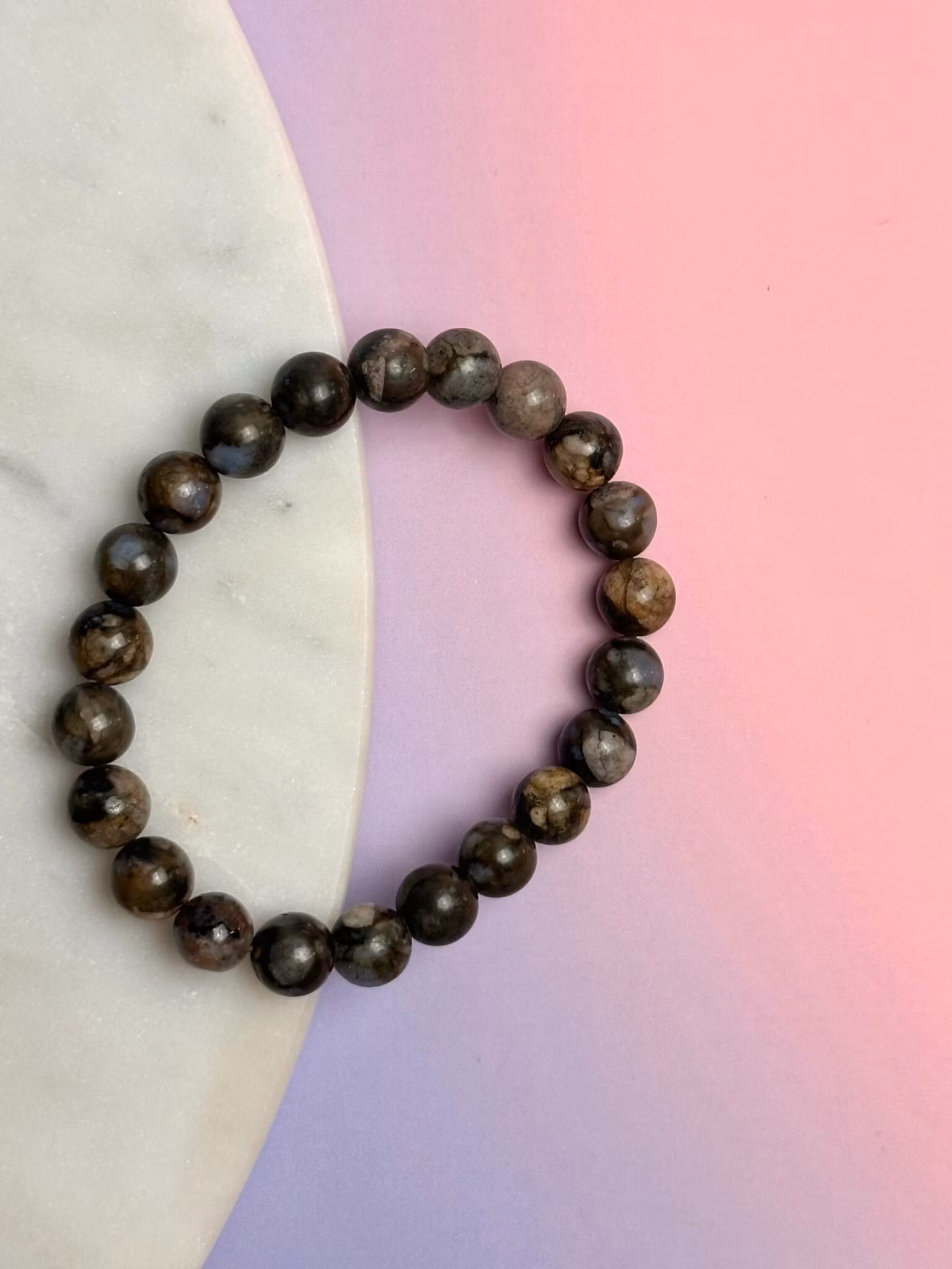 Storlek armband: 8 mm pärlor, ca 16-17 cm