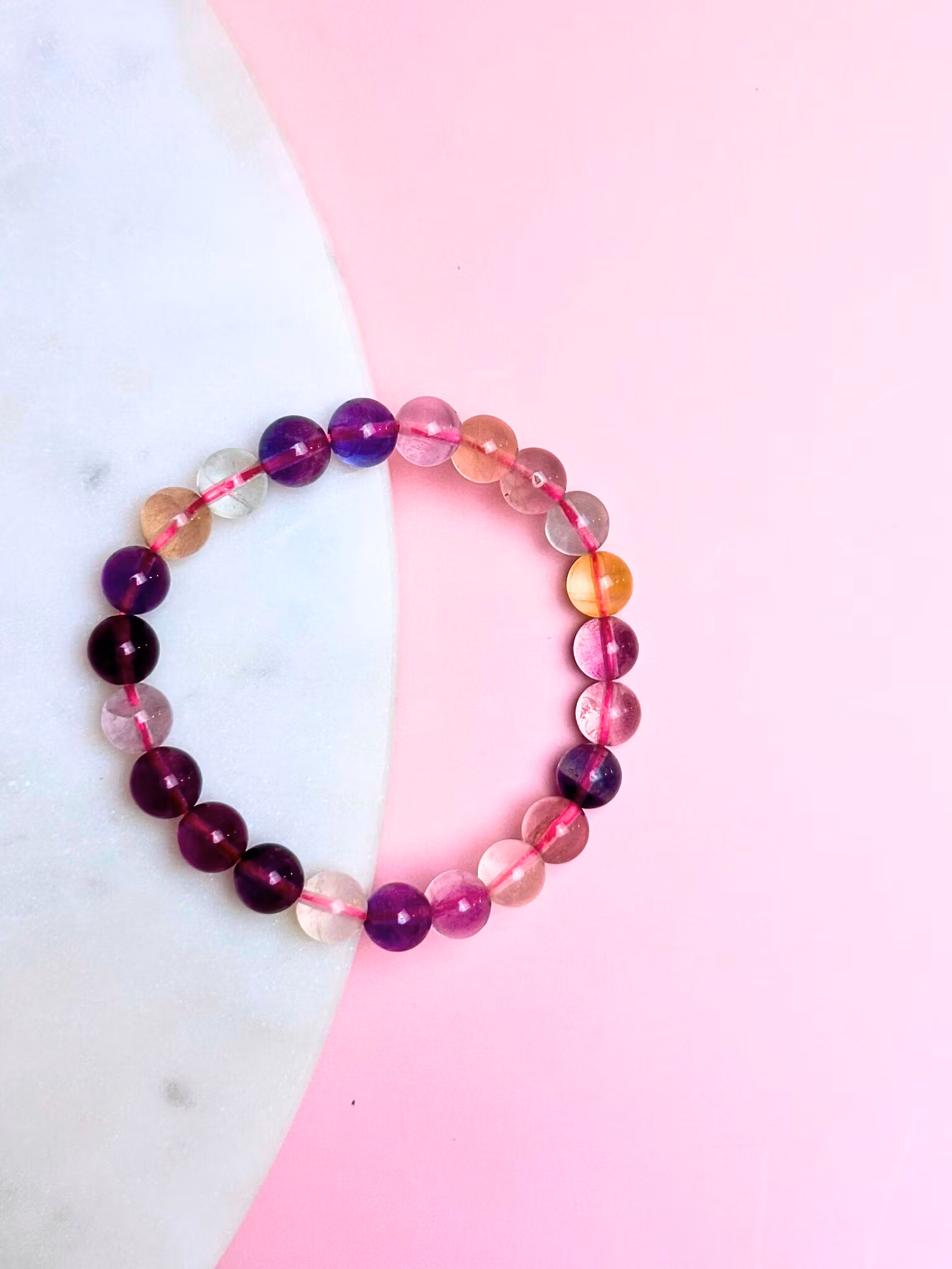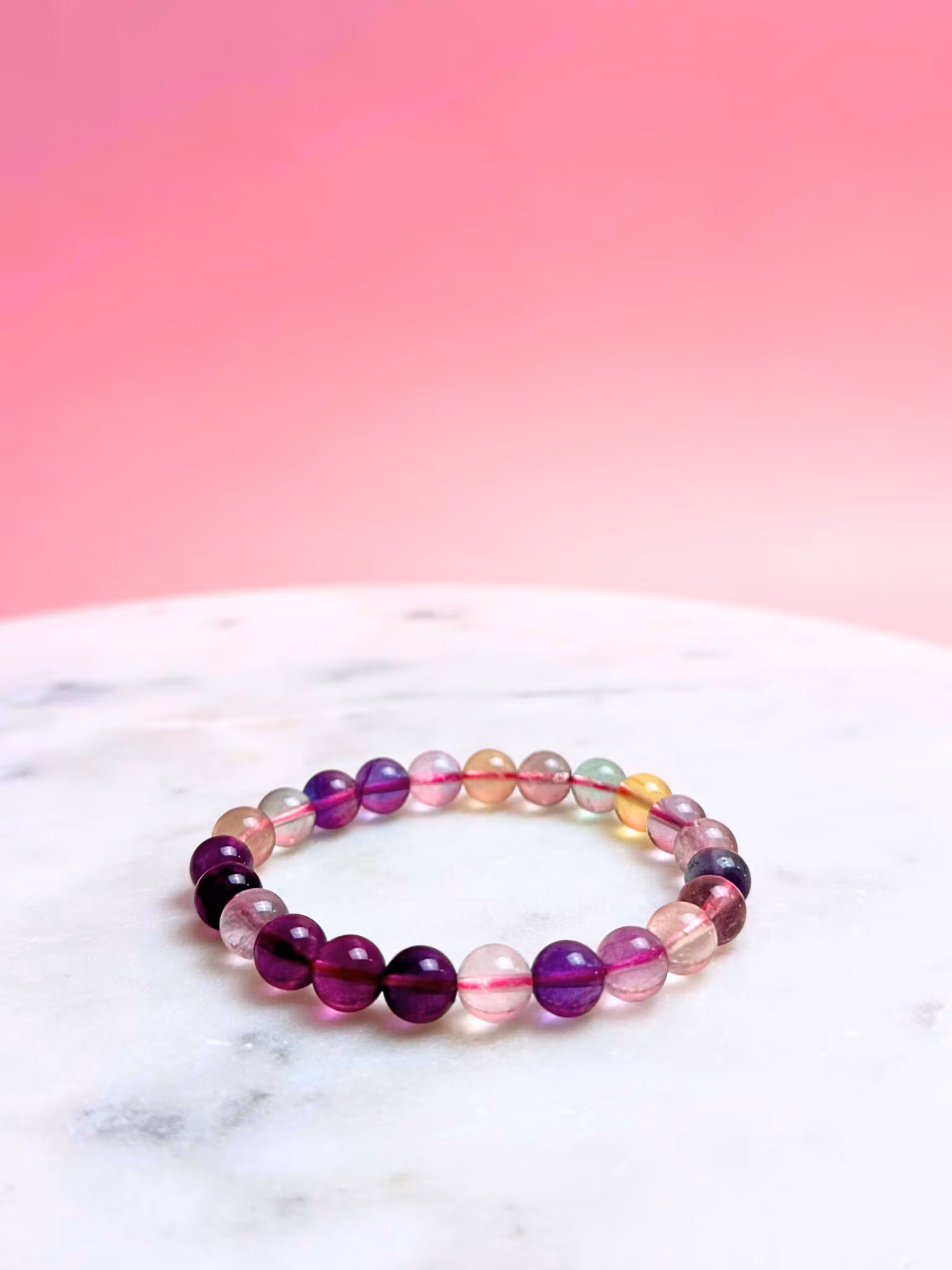 Fluorit är en kraftfull kristall som är känd för sina klara och livfulla färger, som en färgsprakande vägvisare. Fluorits klara och levande nyanser påminner om naturens magi och kan vara allt från djup lila, smaragdgrön, himmelsblå och solgul till helt genomskinlig. Fluoriten sägs hjälpa dig att skärpa ditt fokus och sortera dina tankar när livet känns överväldigande.