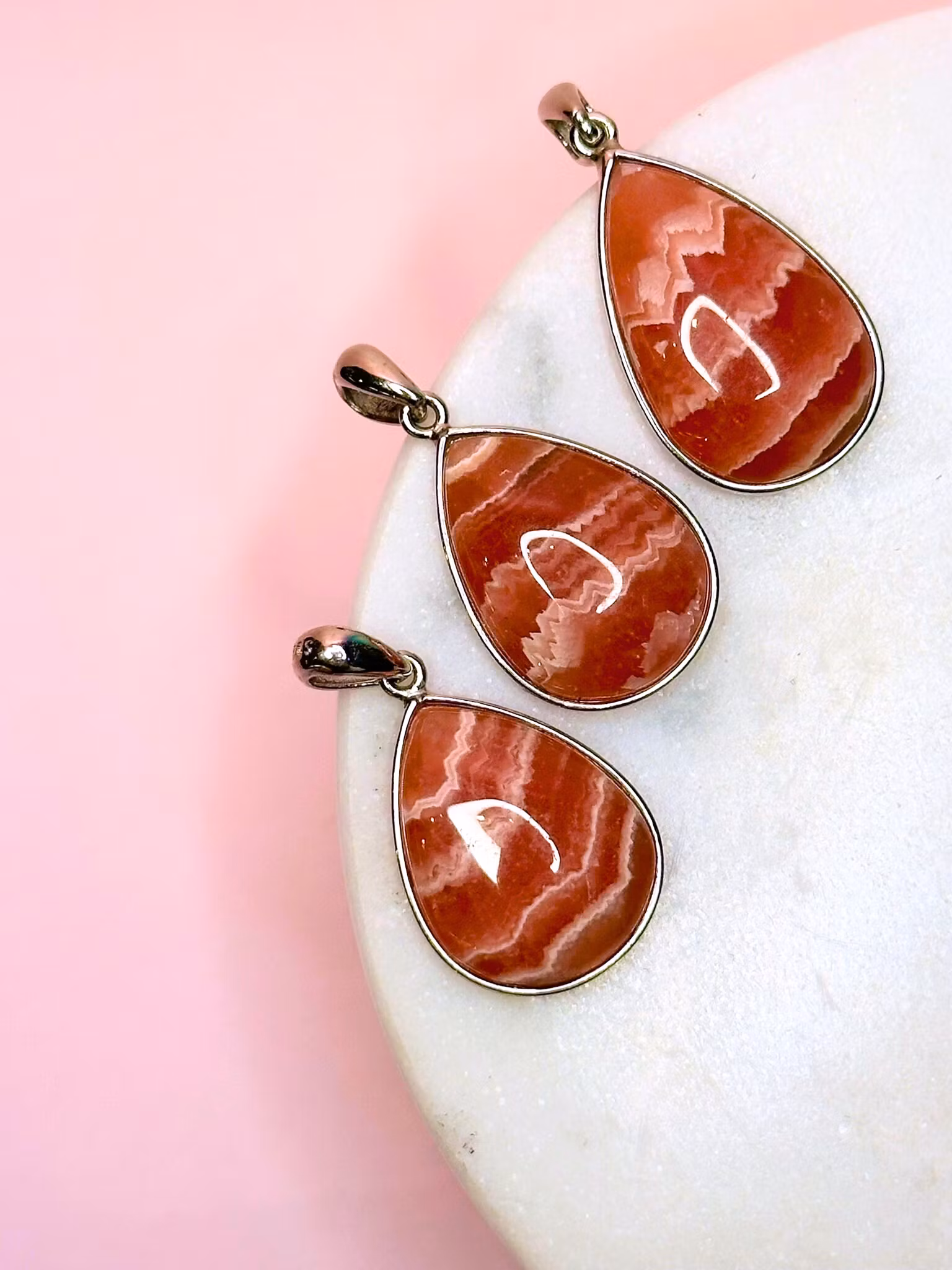 Hänge i sterlingsilver med Rodokrosit av högsta kvalitet.