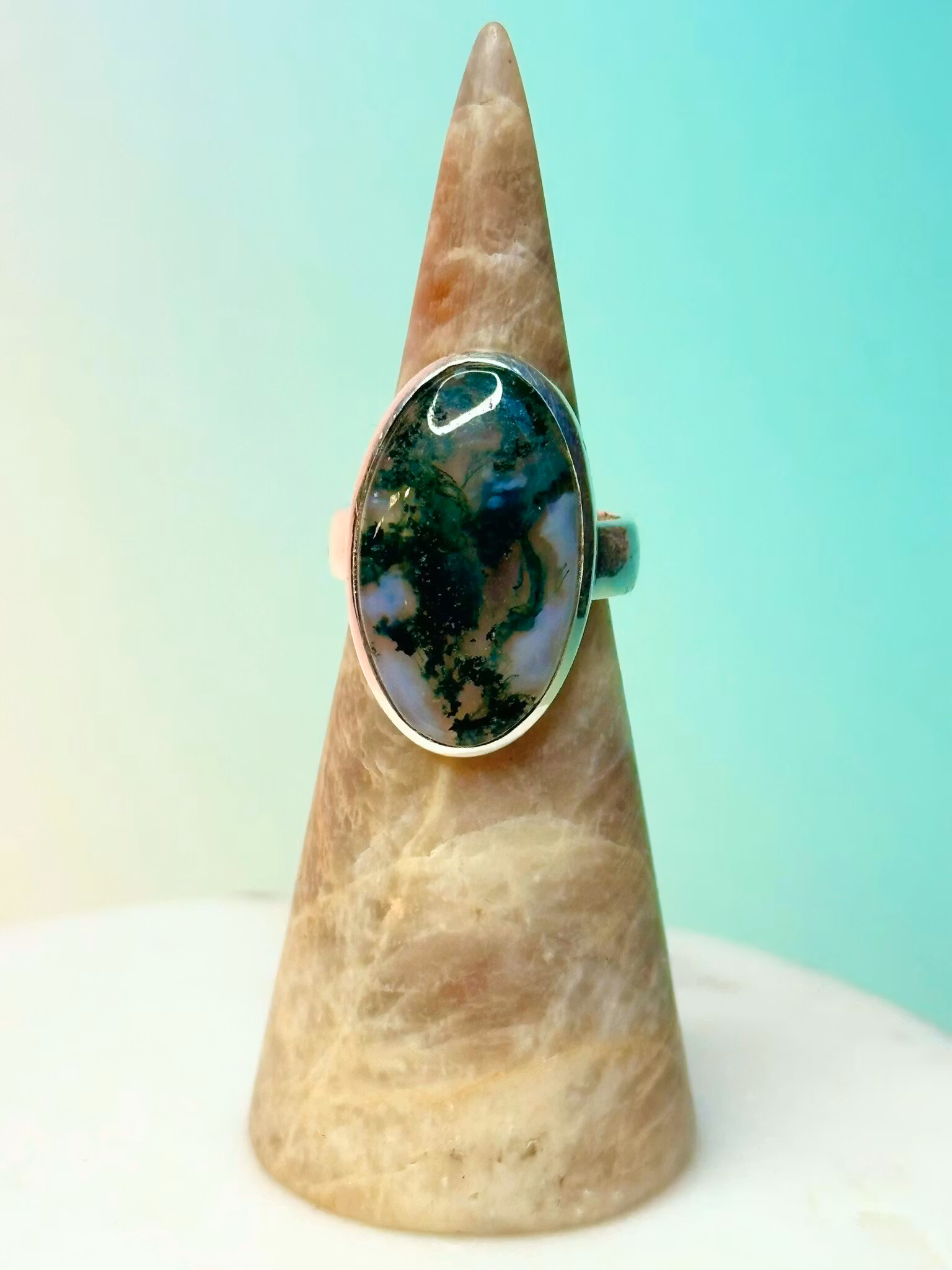 Ring i sterlingsilver med en Mossagat av högsta kvalitet